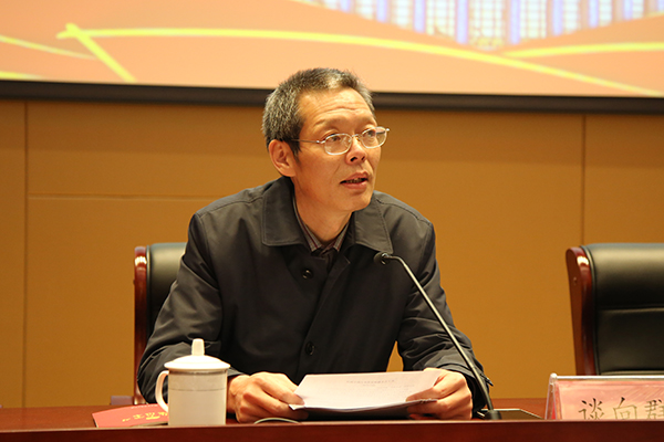 谈向群副书记对吴春林同志所作的精彩宣讲表示感谢,指出学校将进一步学习贯彻党的十九大精神,把学习贯彻党的十九大精神作为当前首要政治任务来抓,用习近平新时代中国特色社会主义思想武装头脑;用大会精神统领学校工作全局,引导广大师生切实把思想和行动统一到党的十九大作出的各项决策部署上来,进一步推动学校内涵发展,助力学校优质高职校建设,加快建设“国内一流,国际水准,特色鲜明高职名校”。