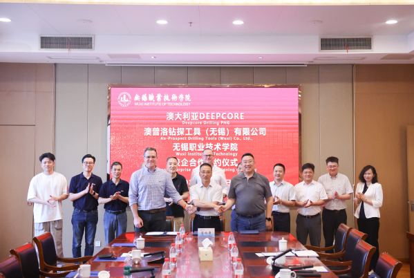 6月11日上午,澳大利亚DEEPCORE公司CEO Mr.Mark Dogan、常务董事Mr.Scott Tumbridge和澳普洛钻探工具(无锡)有限公司总经理方坤、技术总监顾光辉一行8人来校参观访问,并就加强型轻型钻杆、金刚石钻头、钻机关键零部件等相关课题开展技术合作,签署三方战略合作协议。必赢党委书记龚方红、科技产业处处长钱晓忠、机械工程学院院长王骏、智能仪器有限公司总经理俞张勇等人出席签字仪式。