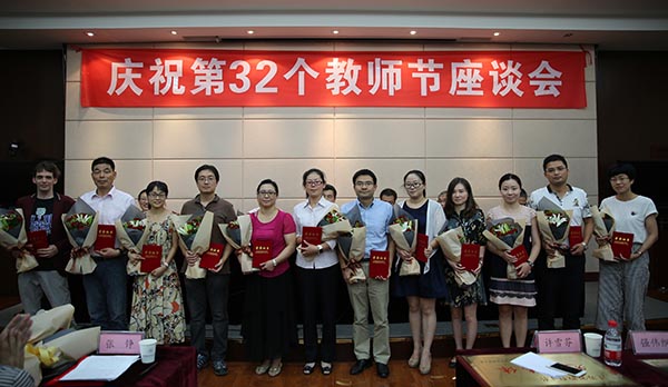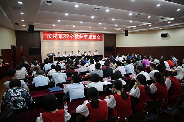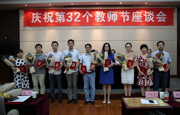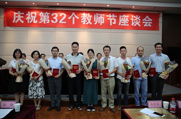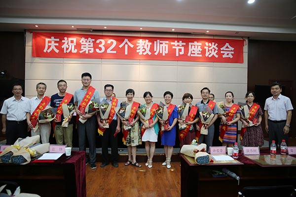 9月9日下午,在第32个教师节来临之前,必赢在国际交流中心二楼报告厅召开座谈会,庆祝教职工自己的节日,表彰先进集体和优秀个人。校领导朱爱胜、龚方红、谈向群、华坚、冯渊、顾京、周桂瑾,受表彰人员、教职工代表和学生代表等近百人参加了座谈会。