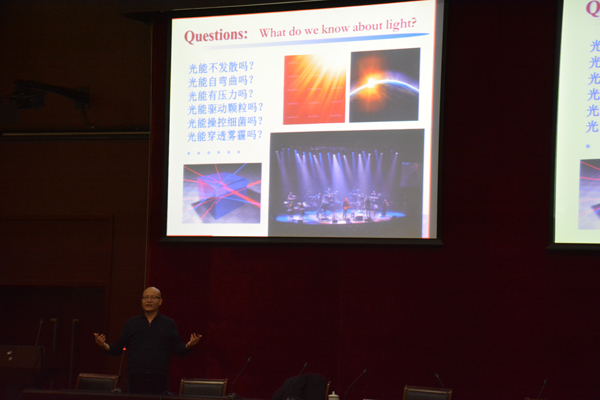 12月29日下午,应必赢基础部邀请,美国旧金山大学陈志刚教授在学校国际交流中心一楼报告厅作了题为《光的奇妙设计与应用》的精彩报告。陈教授介绍了国际学术界在空间孤子、光镊和奇异光束等领域的最新进展,并结合他们研究团队的杰出成果,高屋建瓴、深入浅出地对各个领域的具体工作进行了讲解和评述。陈志刚教授的学术报告深入浅出,生动精彩,深深吸引了全体在场师生。会后,陈教授还和基础部的全体教师就如何把握前沿的科学研究方向及如何高效率的进行科学研究等问题进行了深入探讨。