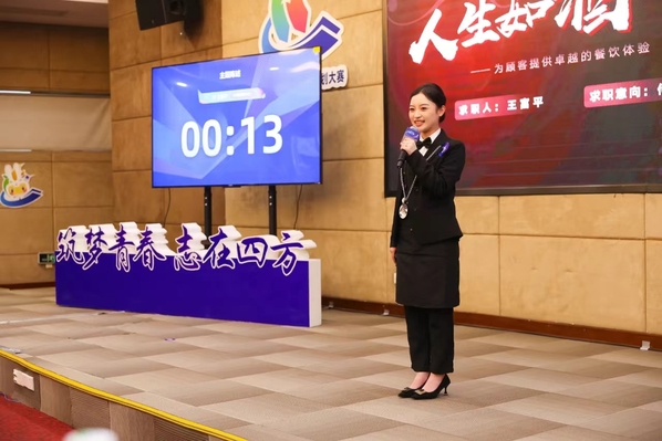 大赛启动以来,学校高度重视,由招就处牵头组织协调,广泛宣传,积极组织学生参赛。指导老师认真研究大赛特点,紧密结合主题,精心培训辅导,反复打磨参赛作品,进一步提升了学生在竞赛中的能力和技巧。王富平同学通过校赛、省赛层层选拔,入围全国总决赛。决赛现场,王富平同学沉着应对,发挥稳定,通过“主题陈述”“评委提问”“天降Offer”三个环节,充分展示了个人发展路径与经济社会发展需要的适配度,就业能力与职业目标、岗位要求的契合度,勇夺职教组就业赛道总决赛银奖。