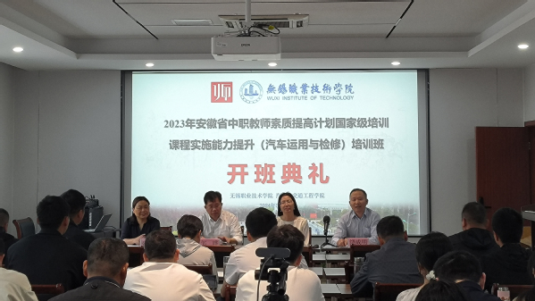 5月13日,2023年安徽省职业院校教师素质提高计划国家级培训汽车运用与维修课程实施能力提升培训班在必赢汽车与交通工程学院二楼培训教室开班。校党委副书记杨雪琴、继续教育与培训部、汽车与交通工程学院等部门相关负责人,以及培训班全体学员出席开班仪式。