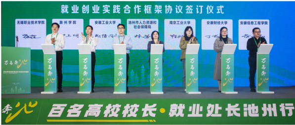 招生就业处处长房磊应邀参加活动,并与池州市人力资源和社会保障局签订了市校就业创业实践合作框架协议。