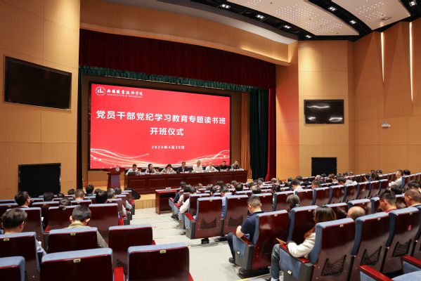 为深入学习贯彻习近平总书记关于党纪学习教育的重要讲话和重要指示精神,4月26日下午,学校在厚德楼一楼报告厅举办党员干部党纪学习教育专题读书班开班式。党委理论学习中心组全体成员、全体党员中层干部、学校纪委委员、二级学院纪检委员等参加开班式。