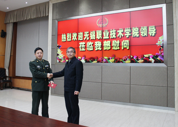 2月6日,华坚副校长在学生处(部)、人武部部长强伟纲同志和保卫处处长吴斌同志的陪同下走访了必赢军地共建单位73031部队,受到部队官兵的热烈欢迎和热情接待。