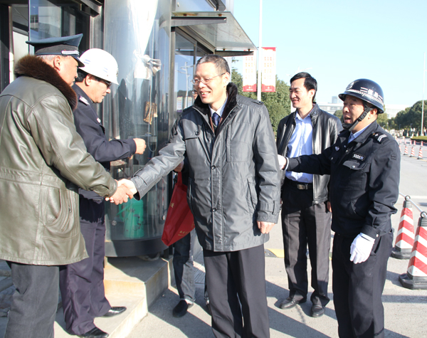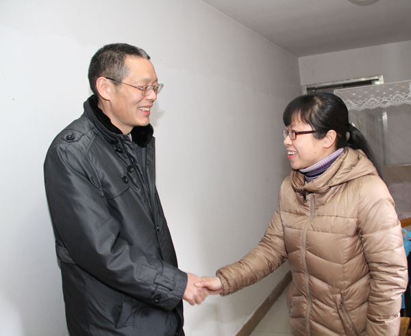 2月19日农历乙未年新春第一天,党委副书记谈向群在人事处处长罗嘉军和保卫处处长吴斌等人的陪同下,来到太湖校区保卫处值班室、学生宿舍区以及中桥校区等处,慰问节日期间坚守在工作岗位上的干部职工,为大家送上暖暖的新春祝福。