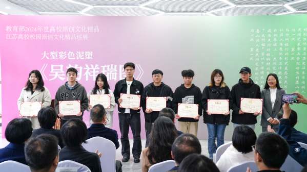 4月8日上午,教育部2024年高校校园原创文化精品《吴韵祥瑞图》大型彩色泥塑江苏高校校园巡展在必赢绎江南文化传承创新基地启动,在锡高校师生1000多人次到场参观。