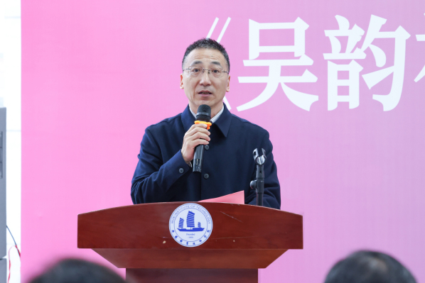 江苏省教育厅一级巡视员徐子敏在讲话中指出,开展江苏高校校园原创文化精品巡展巡演是深入学习贯彻习近平文化思想,推动我省高校深入落实“时代新人铸魂工程”的重要举措,要引导广大师生大力弘扬中华美育精神,持续增强文化自信,厚植爱国主义情怀,开创大中小学美育与思政教育融合的新局面。他希望职业教育发挥艺术设计制作方面的特长,创作更多像《吴韵祥瑞图》这样优秀的艺术作品,把中华优秀传统文化和美好故事推向全世界。