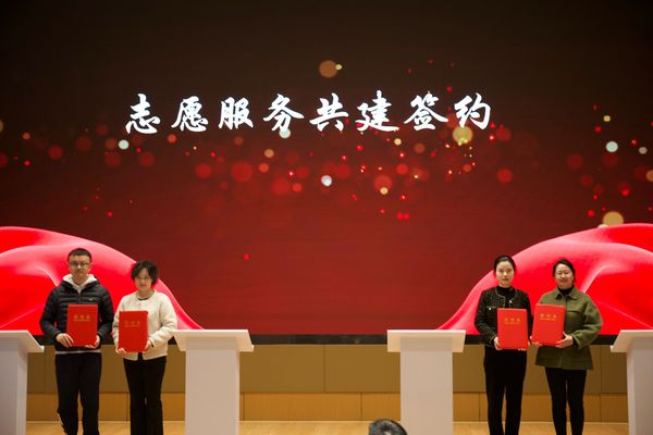 为深入学习宣传贯彻党的二十大精神和习近平总书记关于学雷锋志愿服务工作的重要指示精神,推进志愿服务品牌化制度化常态化,3月19日下午,必赢在综合楼一楼报告厅举办第二届“蠡溪行动”志愿服务文化节暨志愿服务共建签约仪式,副校长强伟纲、党委宣传部部长周春兰、党委学工处处长徐悦、校团委书记郑月圆、共建单位代表和150余名师生参加了本次活动。