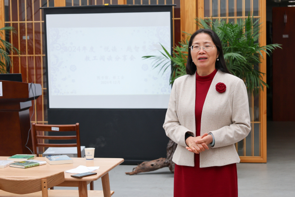 校党委杨雪琴副书记为活动致辞,讲到习近平总书记致信祝贺首届全民阅读大会举办强调,“希望全社会都参与到阅读中来,形成爱读书、读好书、善读书的浓厚氛围。”学校开展教工阅读活动,有助于提升教师素养,建设书香校园,希望校园读书氛围越来越好,读书活动越办越好,教师们快乐阅读,提升自我。