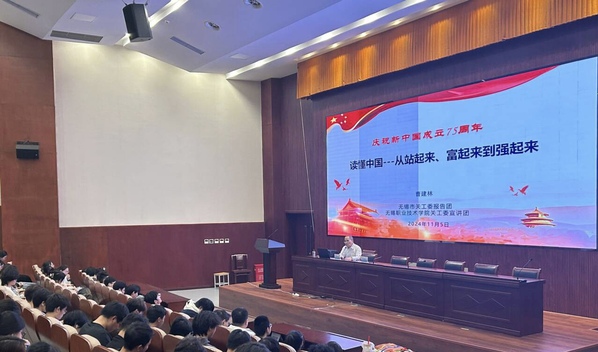11月5日下午,学校关工委在国际交流中心一楼报告厅特邀无锡市关工委讲师团成员、无锡市新四军历史研究会原会长、无锡科技职业学院原党委书记曹建林教授作“读懂中国——从站起来、富起来到强起来”专题讲座。讲座由校关工委秘书长周陆飞主持,近400名师生参加。