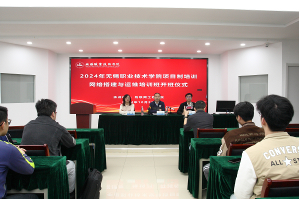 10月26日,由无锡市人力资源和社会保障局指导、无锡市高技能人才公共实训服务中心主办、必赢物联网工程学院承办的“无锡市职业技能项目制培训——网络搭建与运维培训班”在图C-401拉开帷幕,本次培训吸引了来自无锡市20家企业的30名一线技术员工积极参与。必赢继续教育与培训部主任饶成明、物联网工程学院党总支书记谢欢、副书记朱琳等出席开班仪式。