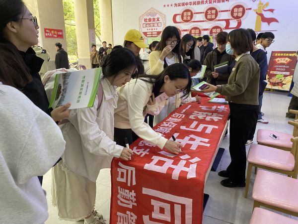 食堂里老师们通过发放精心制作的节能减排宣传册、横幅签名活动等方式,让师生对节能低碳有了更深入的认识,师生们纷纷在横幅上签下自己的名字,承诺从自身做起,从点滴做起,积极践行节能低碳生活方式。