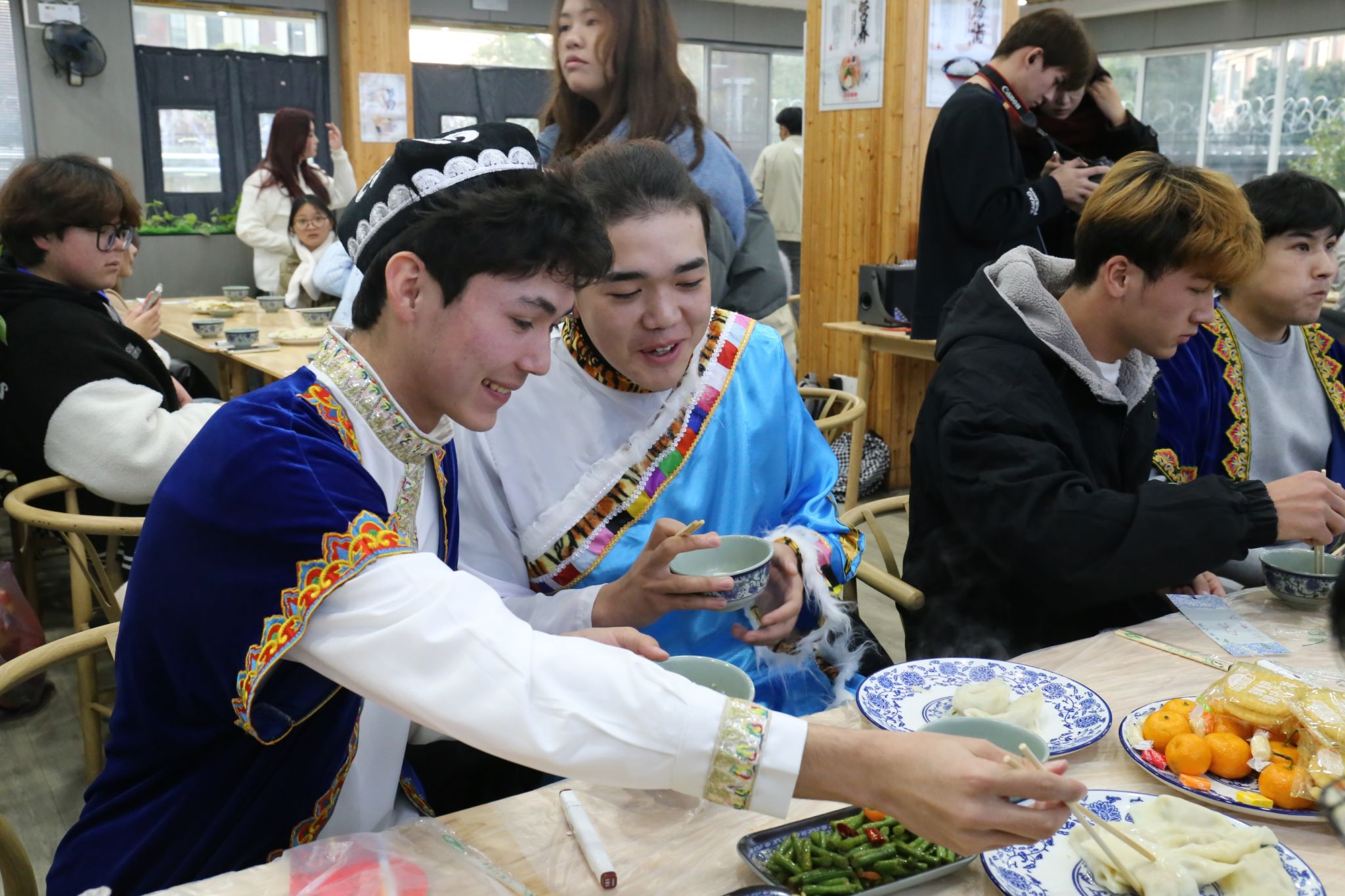 为弘扬中华传统文化,冬至来临之际,学生处、校团委、校学生会、石榴籽协会共同举办“我们的节日——情暖冬至共话团结”系列活动,来自全校各院系的百余名师生欢聚一堂,包饺子、话团结、同欢乐,感受传统文化节日的魅力,副校长强伟纲、相关职能部门负责人参加了活动。