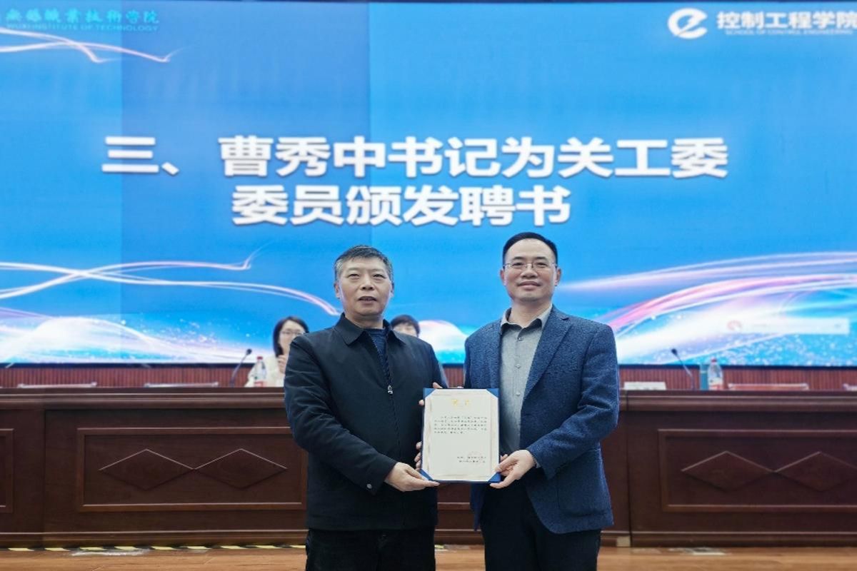 表彰大会在庄严的国歌中拉开帷幕,徐悦致开幕词,从“德”育铸魂、“智”育启思、“体”育强身、美”育润心、“劳”育践行等五个方面,以一名学生教育工作者的深厚情怀,向同学们提出了亲切嘱托,希望同学们在担当未来工匠的成长道路上,提升素养,全面发展。随后,曹秀中为于建军颁发了关工委聘书,进一步壮大了控制工程学院关工委老同志队伍,扎实推动和发挥“五老”在关心下一代工作中的重要作用。