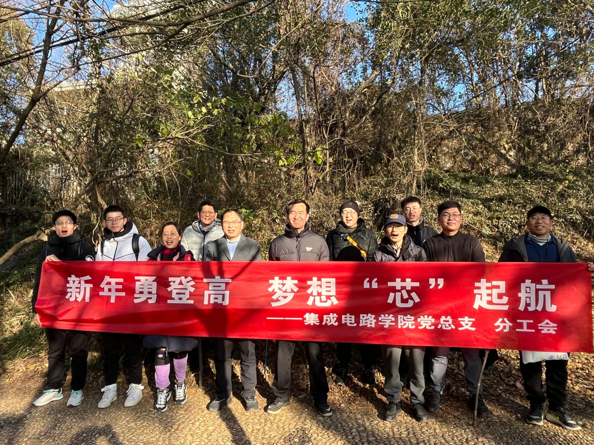 为了丰富教职工的业余生活,增强身体素质,促进教职工之间的交流,新年第一天,集成电路学院党总支、分工会组织部门教职工到锡惠公园开展“新年勇登高 梦想芯启航”新年登高活动,用最传统的方式迎接新年的到来,为2025年送上美好的祝愿。
