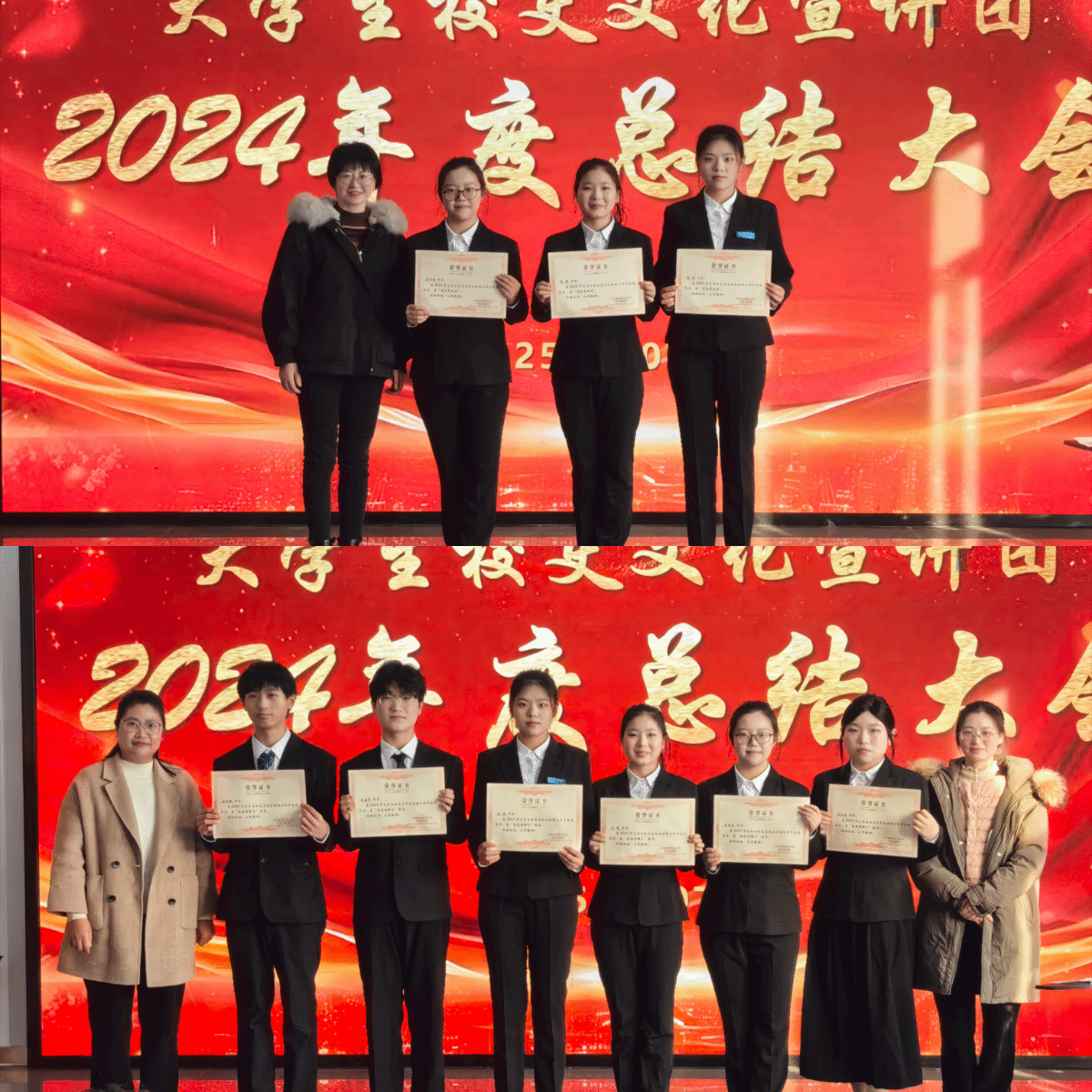 与会领导为获得2024年度最佳讲解员和突出贡献奖的成员进行了颁奖,对宣讲团过去一年取得的成绩表示高度肯定和赞赏,希望宣讲团抢抓机遇,用好数字化平台,促进线下线上宣讲相融合,高标准严要求持续推进品牌化、成果化发展,进一步扩大影响力,成为青年身边的优秀榜样。