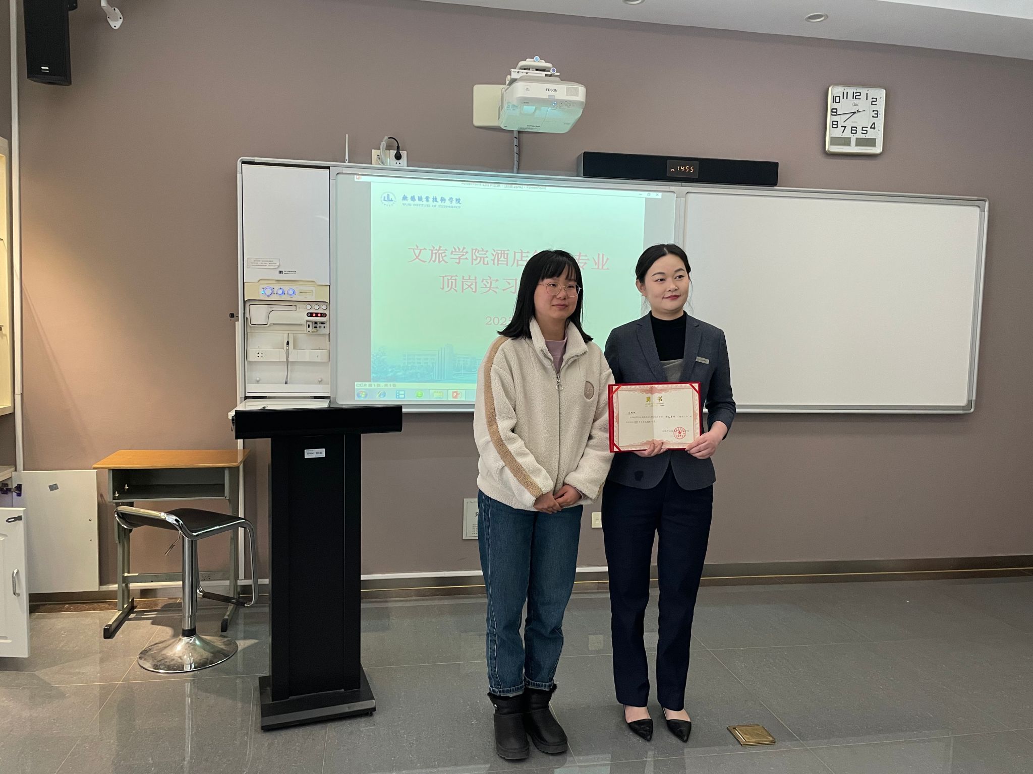 作为无锡苏宁凯悦酒店餐厅经理,石双双校友结合自身经历展开分享。她回顾了从无锡职业技术学院毕业后,如何从基层服务岗位起步,逐步成长为酒店管理者的历程,强调“扎实的专业知识、持续的学习能力和主动担当的职业精神”是突破职业瓶颈的关键,并鼓励学弟学妹珍惜在校实践机会,及早谋划未来职业发展,积极参与行业交流活动,拓宽职业视野。精彩的分享赢得现场同学热烈的掌声。