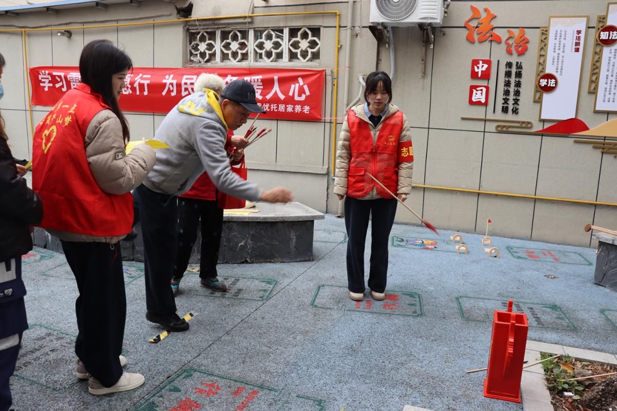 社区广场上,“党员先锋岗”便民服务如火如荼。学生们协助社区居民完成“趣味投壶”“锤丸游戏”“蒙眼拼图”等体验小游戏,让居民切身感受特殊群体的不易。教师党员开展教育咨询、反诈宣传,服务群众百余人。活动高潮出现在“50年党龄老党员上党课”环节,社区老党员张书记以“做一颗永不生锈的‘雷锋螺丝钉’”为题,结合自身抗洪救灾、扶贫助残经历,动情讲述:“党员就要像雷锋的‘螺丝钉’,组织需要时永远钉在最需要的地方!”在场党员在党旗下重温入党誓词,誓言将助残服务融入日常、做在经常。
