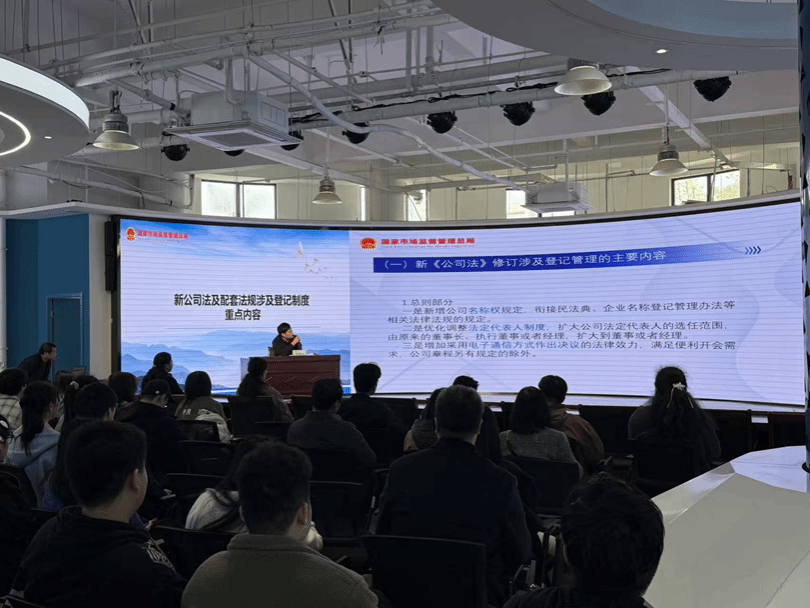 袁敏锋重点解读了新《公司法》下,公司的登记管理制度、设立退出制度、组织机构设置、注册资本的限期认缴制度等,他凭借丰富的实践经验和扎实的专业知识,使在场师生对新政策下公司治理结构以及相关法律责任等方面有了更清晰的认知。