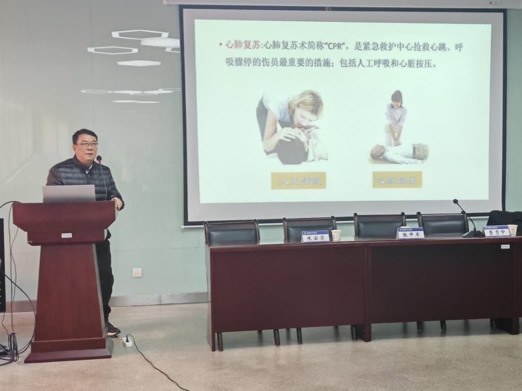 随后,江南大学附属医院麻醉科主任张中军为师生们带来了一堂精彩的心肺复苏(CRP)知识讲座。他紧密结合日常生活中可能出现的突发状况,如运动损伤引发的心脏骤停,通过生动的案例和扎实的专业知识,详细阐释了心肺复苏的重要性及操作要点。从如何准确判断患者意识、规范的呼救流程,到胸外按压与人工呼吸的标准动作,每一个细节都讲解得细致入微,使师生们对心肺复苏形成了系统且清晰的认识。