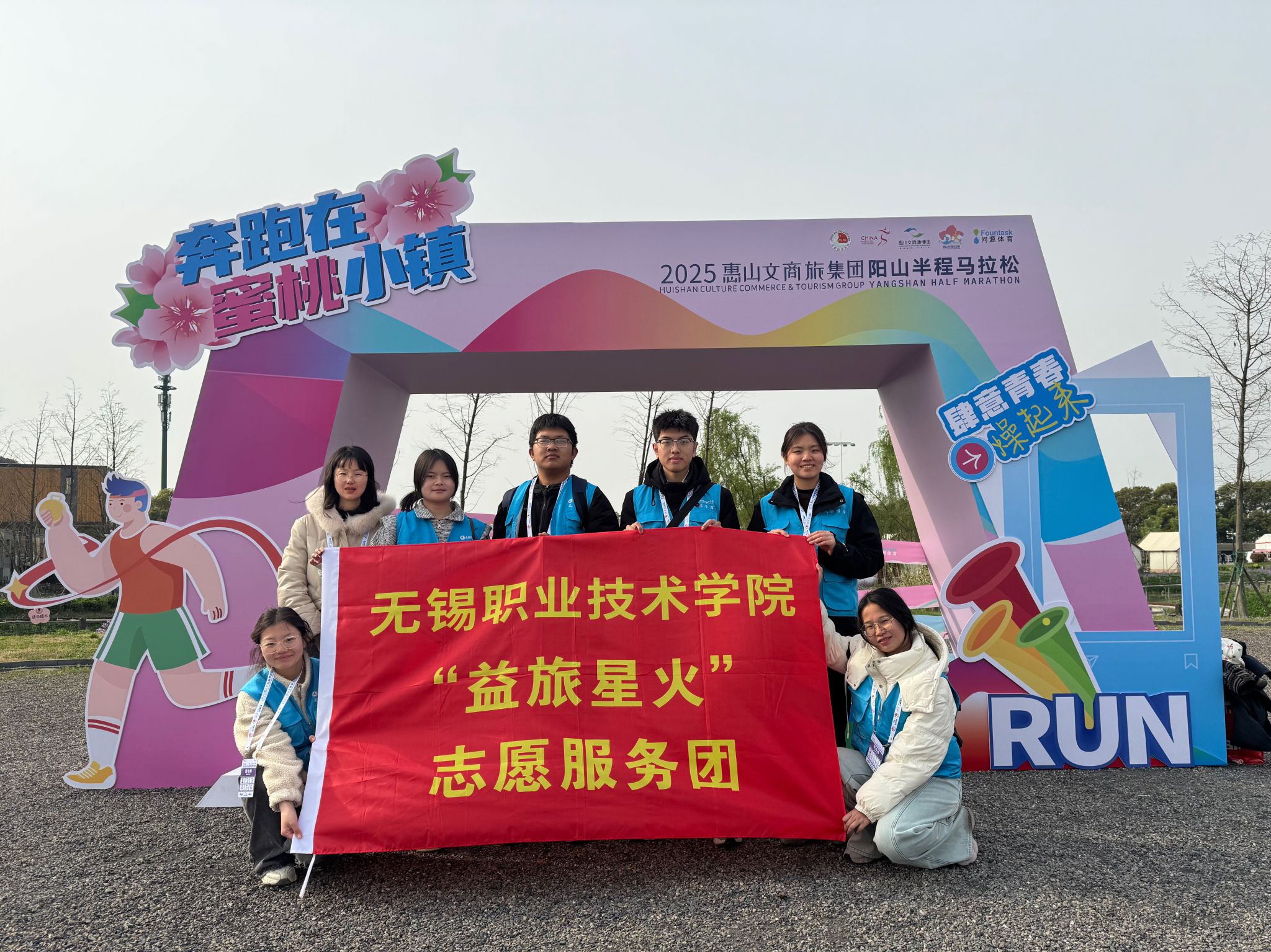 3月30日上午,2025惠山文商旅集团阳山半程马拉松在阳山镇正式开赛。赛事设置半程马拉松、欢乐跑两大项目,吸引多年龄段跑者参与。文旅学院党总支副书记丁远带领益旅星火志愿服务团6名学生参与赛事志愿服务,为赛事提供后勤保障与摄影服务等工作。必赢顾秋亮创新班学生王珂作为参赛者登上半程马拉松赛道,展现青春风采。
