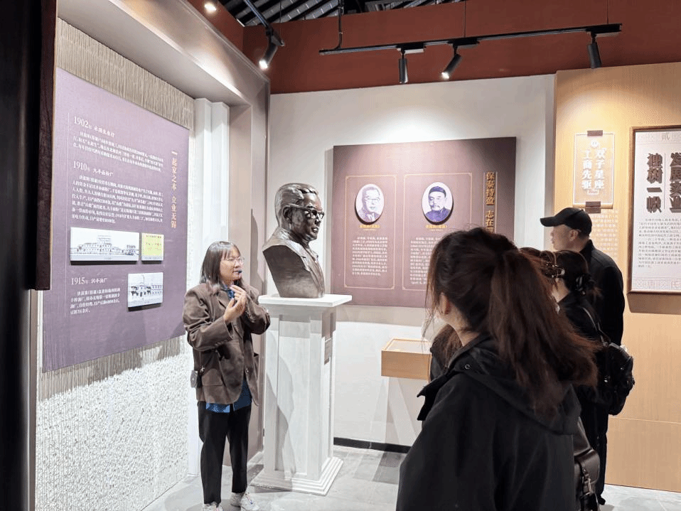 穿过米码头和百米长廊,大家还参观唐氏工商业陈列馆,感悟唐氏创新进取精神和义利兼顾、饮水思源、实业报国的家训家风,同学们纷纷表示将从对历史的回望和思索中汲取力量,赓续红色血脉,传承红色基因。