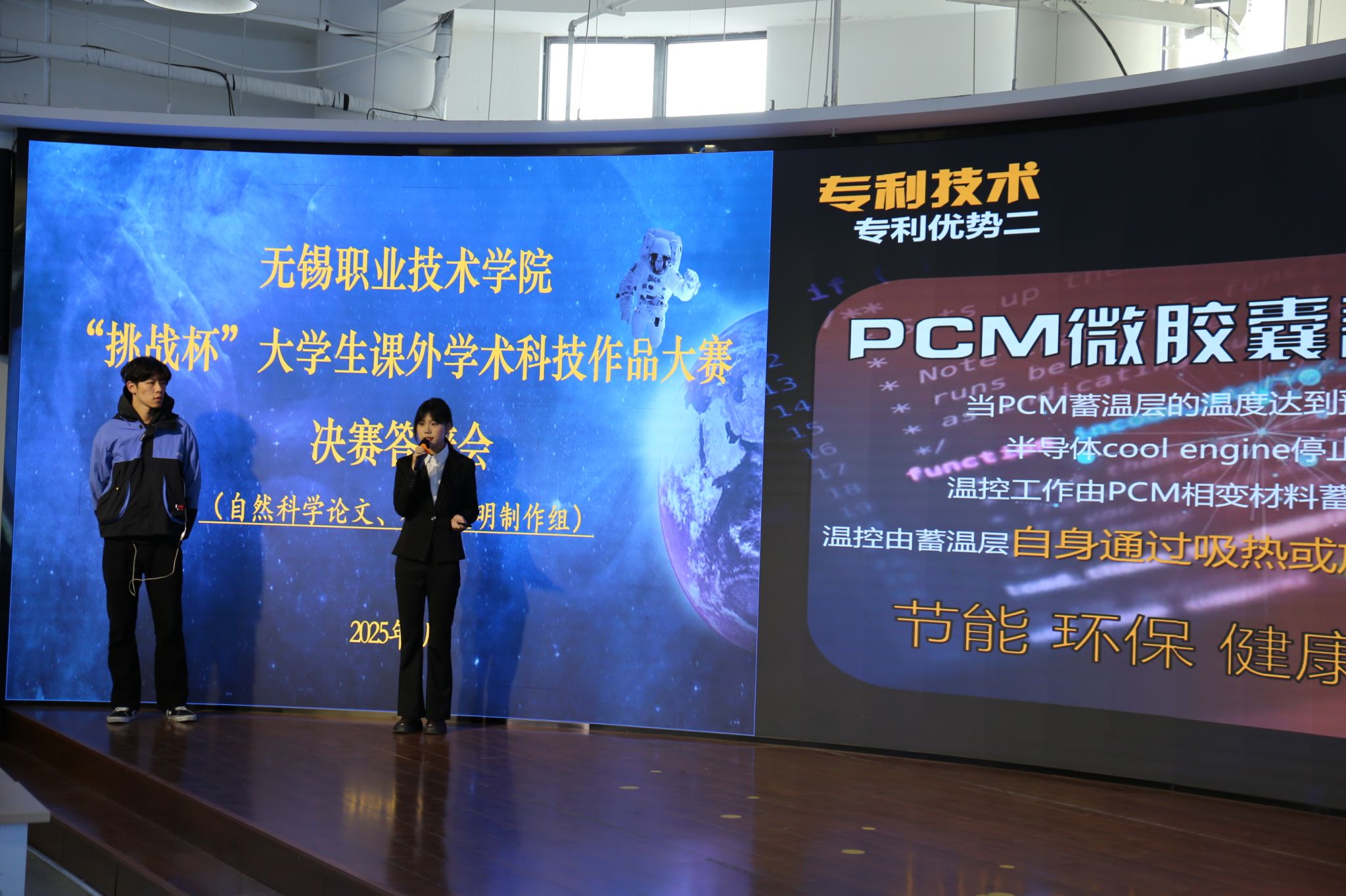 本届竞赛自2024年12月启动以来,学校高度重视,相关职能部门紧密协作,各学院积极响应,经学院推荐、校级初评共有25件优秀作品入围终审。决赛采用“6分钟项目展示+4分钟评委问答”的竞赛模式,参赛团队通过PPT讲解、实物展示、视频演示等多种形式,全方位呈现项目的创新点和应用价值。评委从项目的科学性、创新性、实用价值等多个维度进行综合评审,,并提出建设性优化方案,切实提升了参赛作品的质量。经决赛遴选出的优秀项目将作为重点培育对象,代表学校参加2025年“挑战杯”大学生课外学术科技作品竞赛省赛。