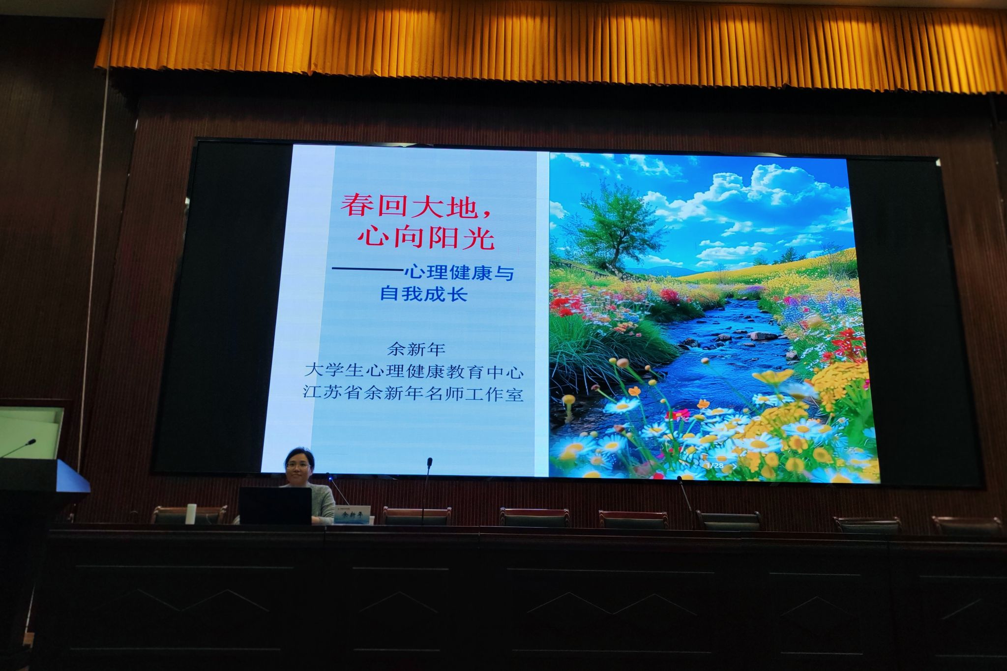为更好帮助学生了解情绪调节等心理健康知识,引导学生提升心理健康水平,4月8日下午,学校在国际交流中心一楼报告厅开展“春回大地,心向阳光——心理健康与自我成长”心理健康教育专题讲座。此次讲座邀请了本校心理健康教育中心余新年老师(副教授,国家二级心理咨询师,中国心理学会(CPS)注册心理师,江苏省高校心理健康教育余新年名师工作室主持人)作为主讲老师,全校学生超400人参加。