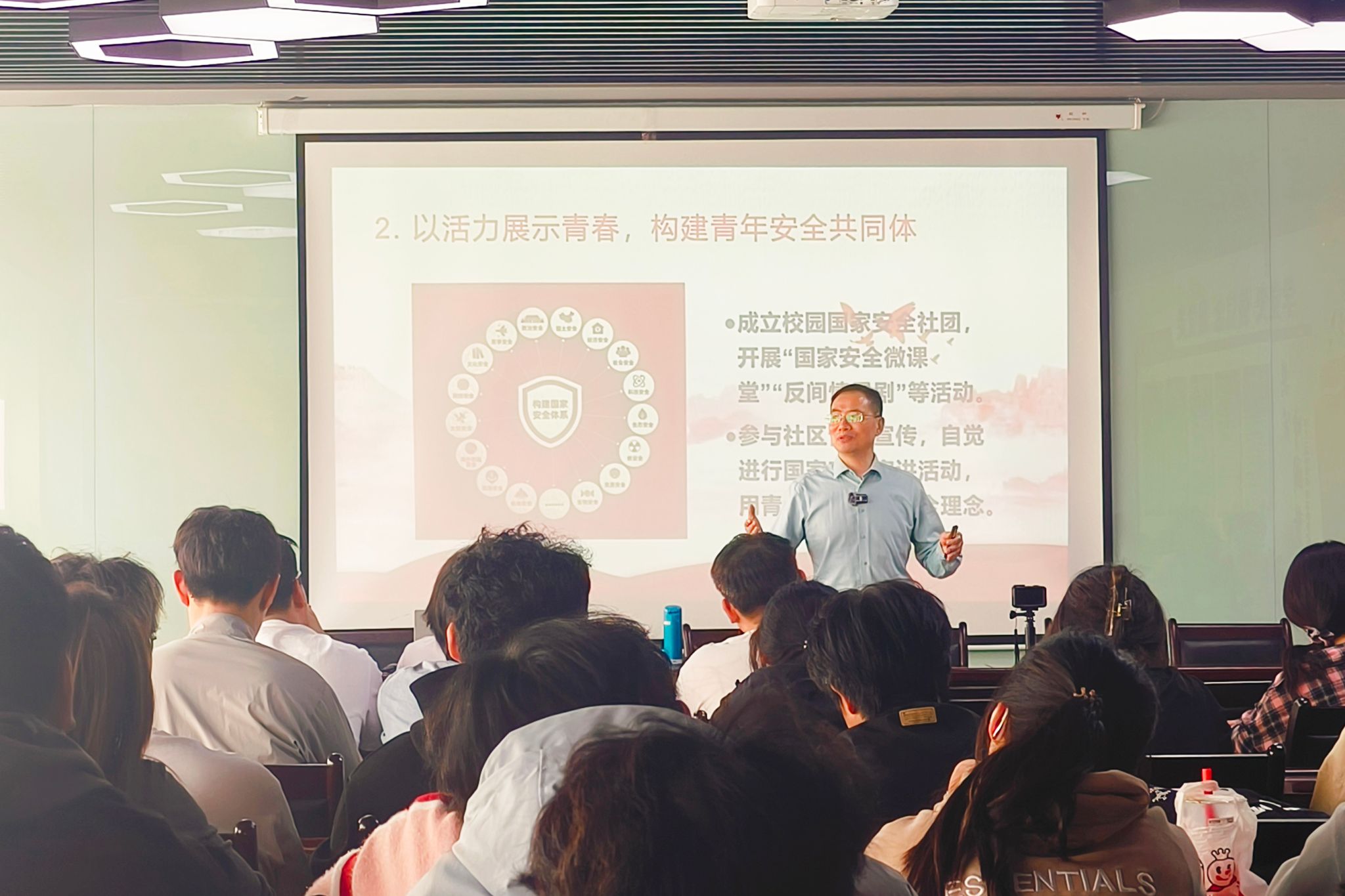 讲座中于建军以青春的觉悟、青春的力量、青春的责任三个清晰的逻辑关系,层层递进,讲述学生如何维护好国家安全以及青年学生该怎样以身作则,充分调动学生的积极性。他结合学院学生专业特点,创新性地提出工匠精神与国家安全的内在联系,通过将“工匠心”融入“安全心”,让每位同学成为国家安全的“匠心守护者”:小到努力学习知识、精进专业技能,大到突破核心技术、守护文化根脉,最终形成“人人讲安全、事事重匠心”的社会氛围,为国家安全构筑最坚实的“人才防线”。