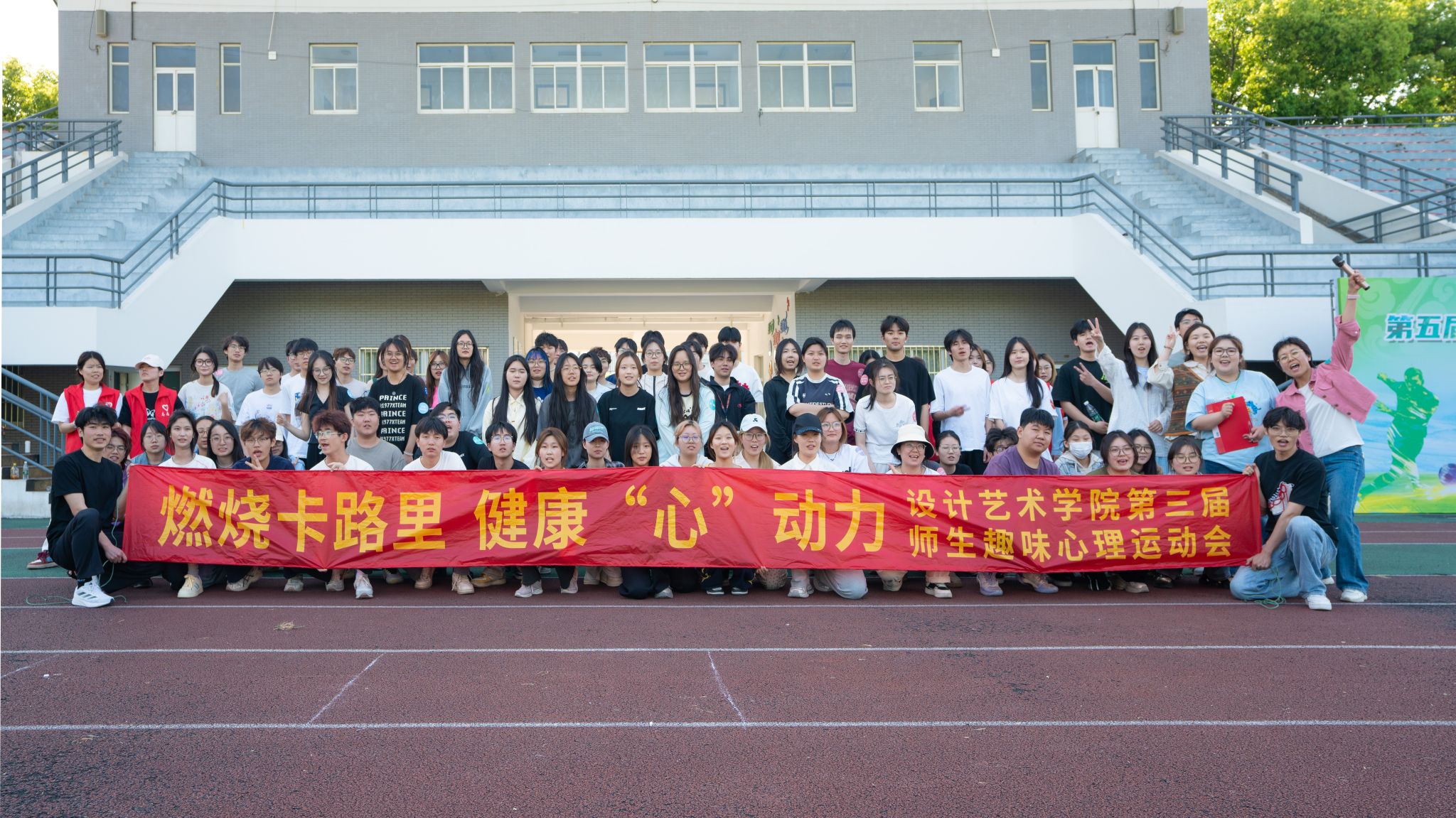 为积极响应“体重管理年”活动号召,倡导阳光运动理念,丰富校园文化生活,促进师生心理健康,4月15日下午,设计学院联合校体育部在体育场举办“一站式”学生社区第三届师生趣味心理运动会。本次活动以“燃烧卡路里,健康‘心’动力”为主题,吸引了来自室内23321班“智趣双赢队”、数媒24322班“风雨无阻队”、产品24322班“第一梯队”等9支队伍近百名师生热情参与。