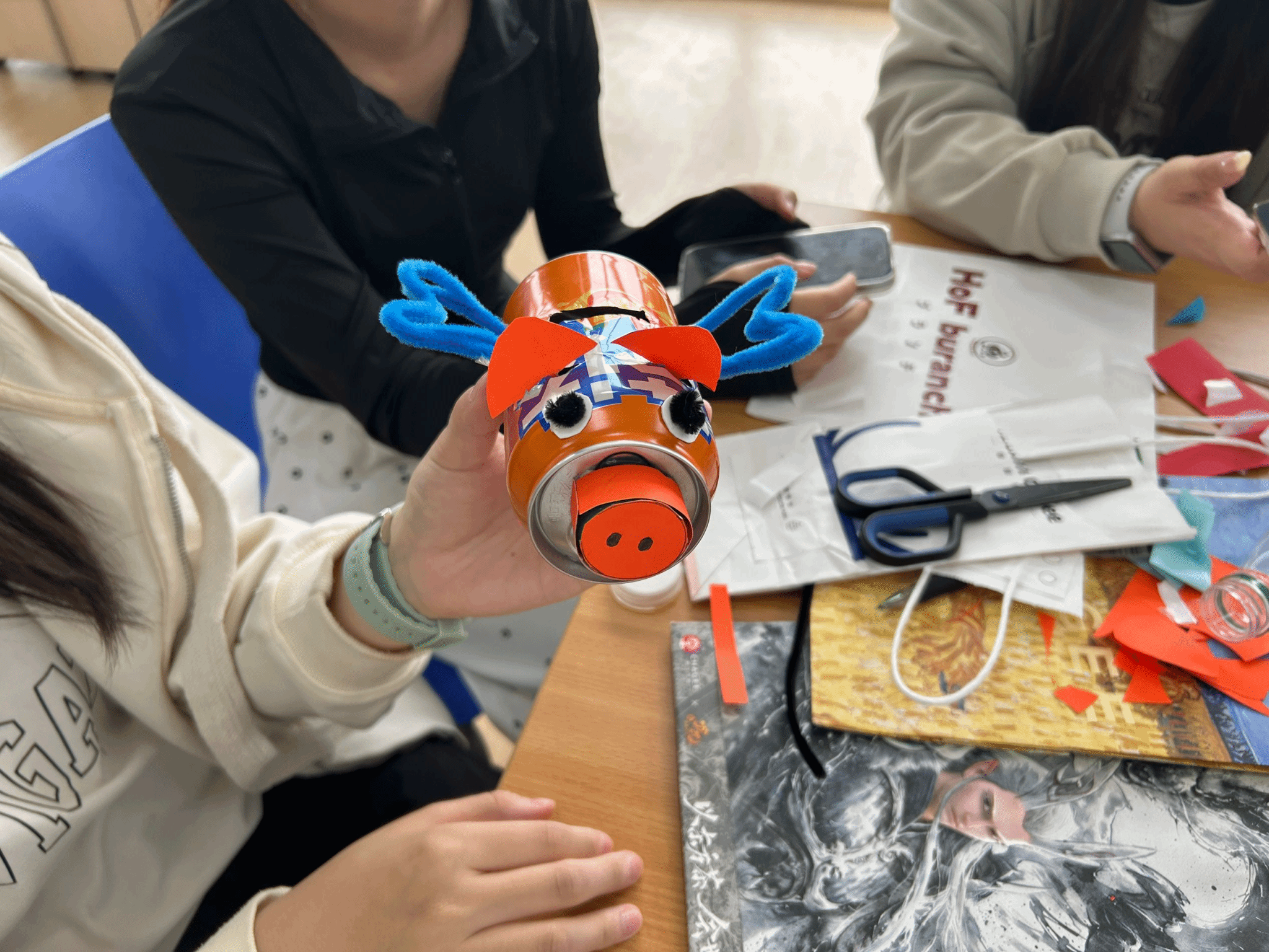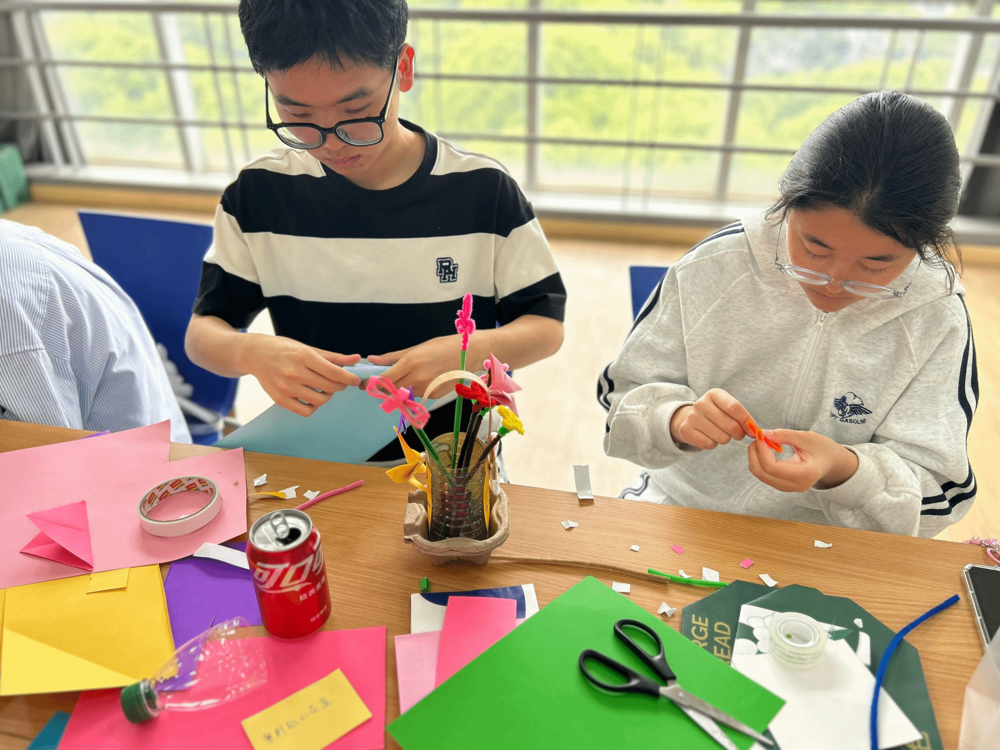 “地球是我们赖以生存的唯一家园,请大家多多使用环保可循环用品!”锡芯逐梦志愿者团队的成员在活动现场向同学们广泛宣传“绿水青山就是金山银山和人与自然和谐共生”的生态环保理念,并呼吁同学们保护环境,从身边做起,从小事做起。此次活动收集到了各式各样的废旧瓶子、纸盒和包装袋,有的同学将塑料瓶裁剪、装饰,制作成小巧可爱的花瓶;有的同学利用废旧纸箱,搭配彩色卡纸,打造出独特实用的手机支架;还有同学利用奶茶纸袋制作成创意摆件...所有手工制品错落摆放在一起,别具一番特色。在制作过程中,同学们相互配合分享手工制作的技巧和经验,还相互交流了日常生活中的环保小妙招以及在生活中的应用。在环保知识抢答环节中,气氛热烈,大家在动手实践中感受着创造的乐趣,在欢声笑语中普及环保知识。