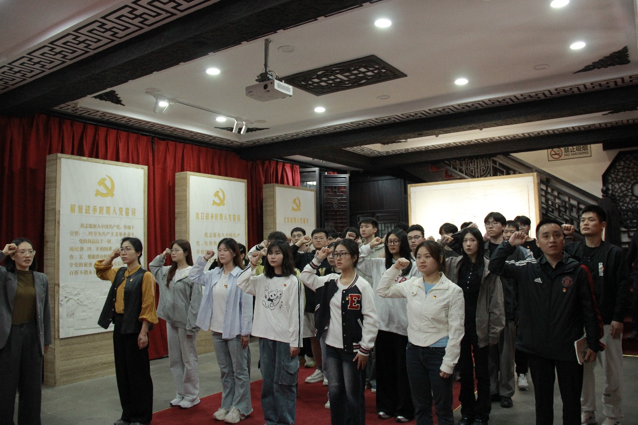 无锡第一支部党建基地是无锡首个党支部、首个团支部诞生地,也是新中国无锡第一面五星红旗升起的地方。党员们瞻仰了秦起烈士铜像、第一支部会址群雕,参观了新中国成立后无锡第一面五星红旗升旗处等重要场所。在无锡第一支部旧址,师生党员通过珍贵史料系统学习了入党誓词从土地革命时期“严守秘密”到新时代“为共产主义奋斗终身”的百年演进历程。展馆内,“永不叛党”的血书、“冲锋在前”的誓词模板等文物,生动诠释了“纪律建设是党的生命线”的深刻内涵。在参观过程中,党员们仿若穿越时空,感受到革命先辈们为了理想信念抛头颅、洒热血的坚定决心,进一步加深了对党的光辉历史和伟大成就的认识。活动最后,全体党员在现场学习了《习近平关于加强党的作风建设论述摘编》第三章,并面对党旗庄严宣誓。