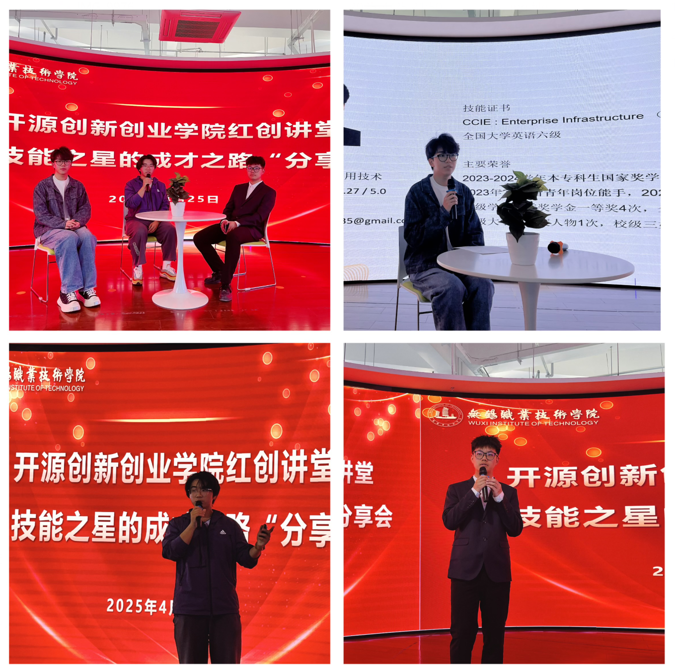 为了充分发挥优秀学子的榜样引领作用,助力学子成长成才,4月25日,双创学院在路演大厅举办红创讲堂之“技能之星的成长之路”经验分享会。来自物联网学院姚建铨创新班、控制学院汇川创新班,多次在技能大赛中获奖的许昌、方志伟、蒋一品担任活动嘉宾,双创学院50余名师生参加了本次活动。