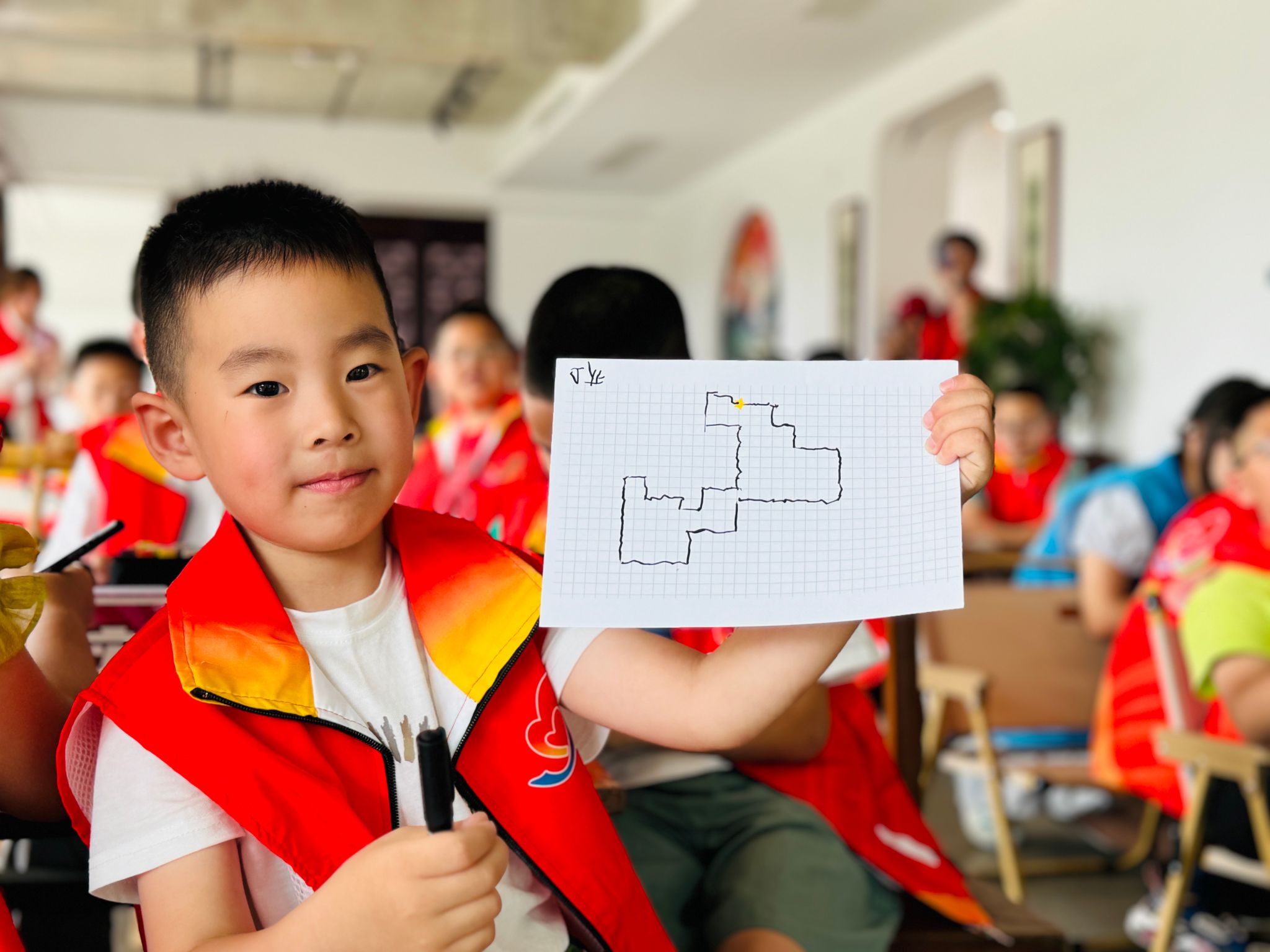 小朋友展示自己绘制的地图