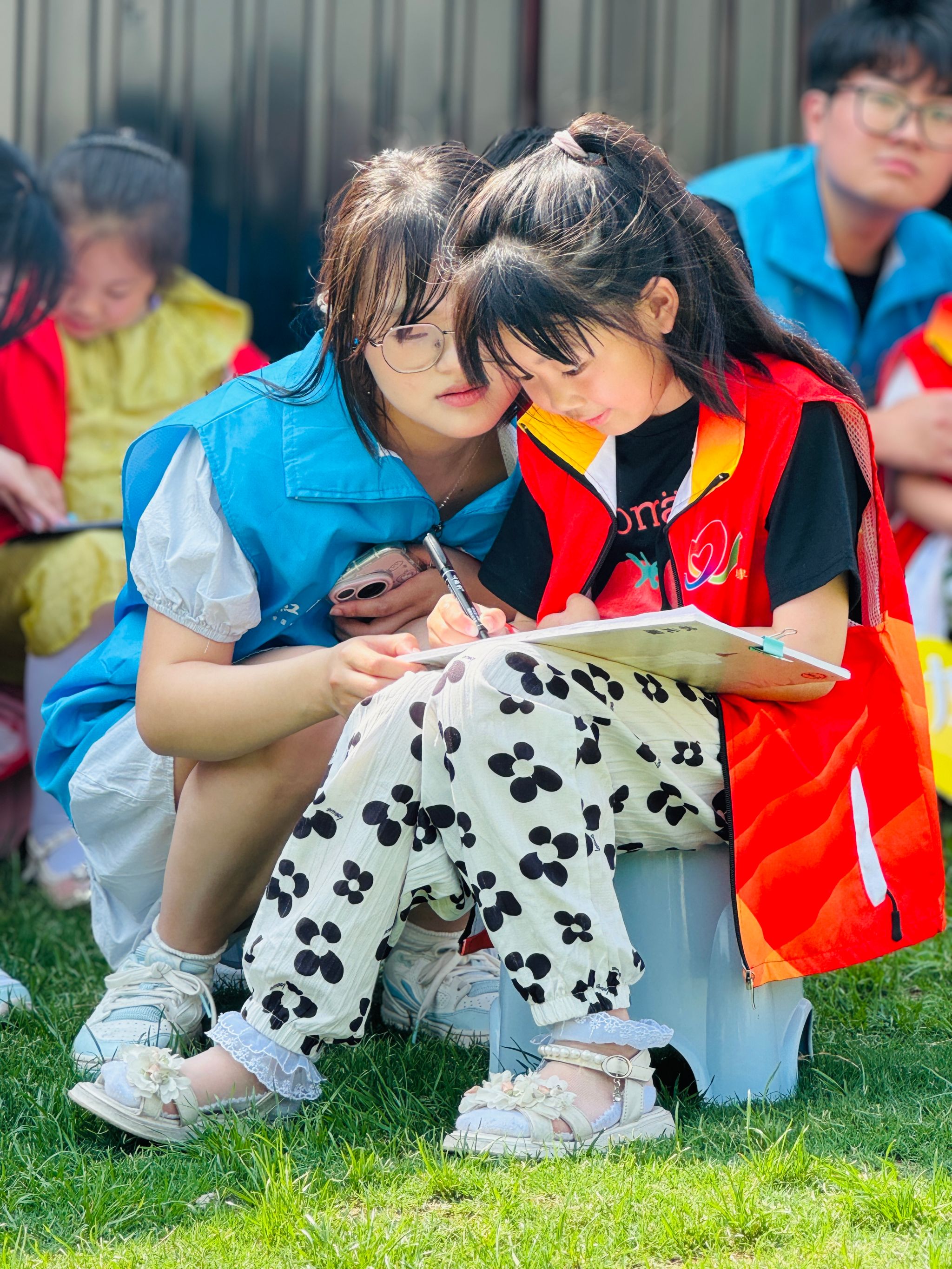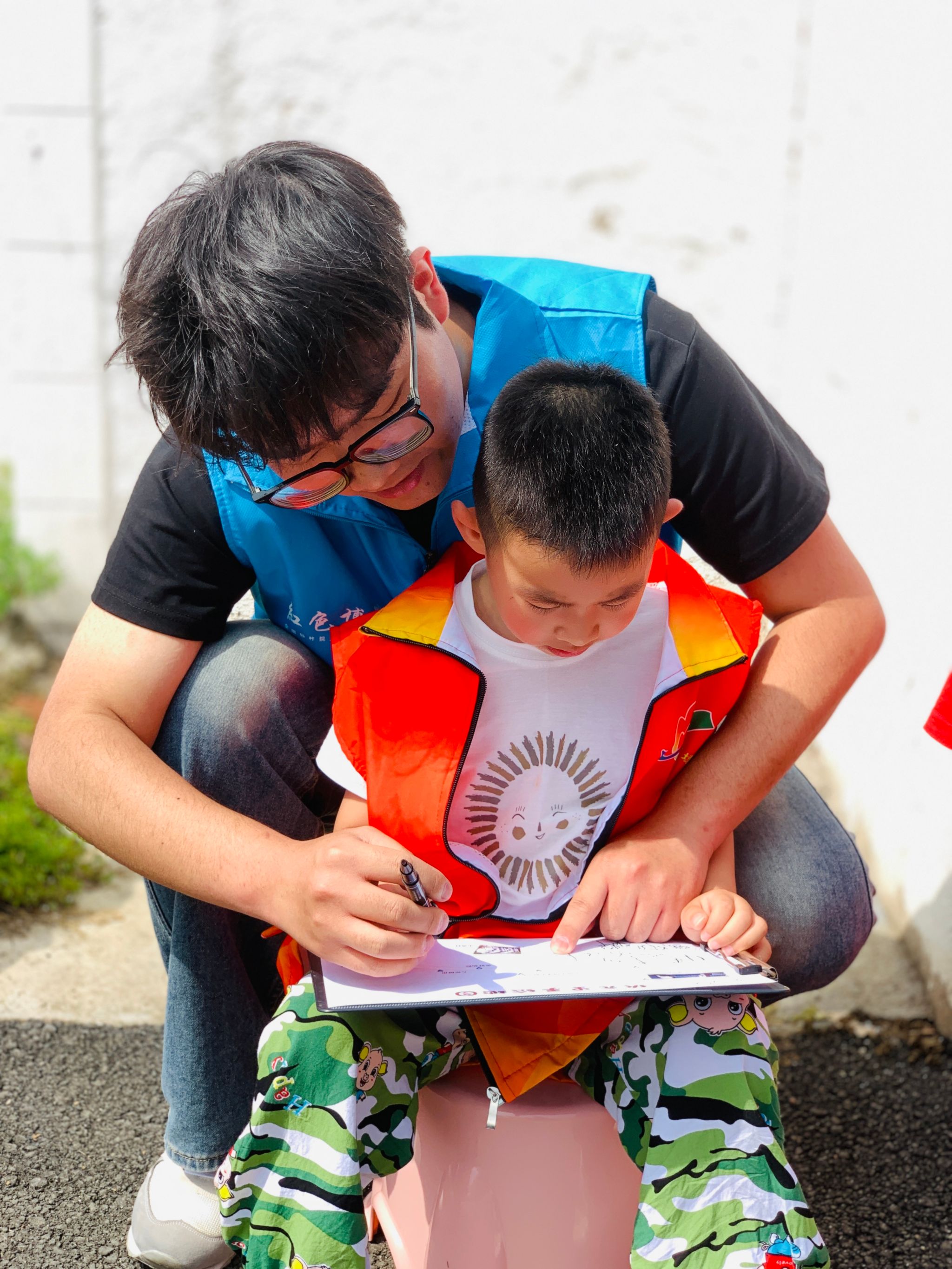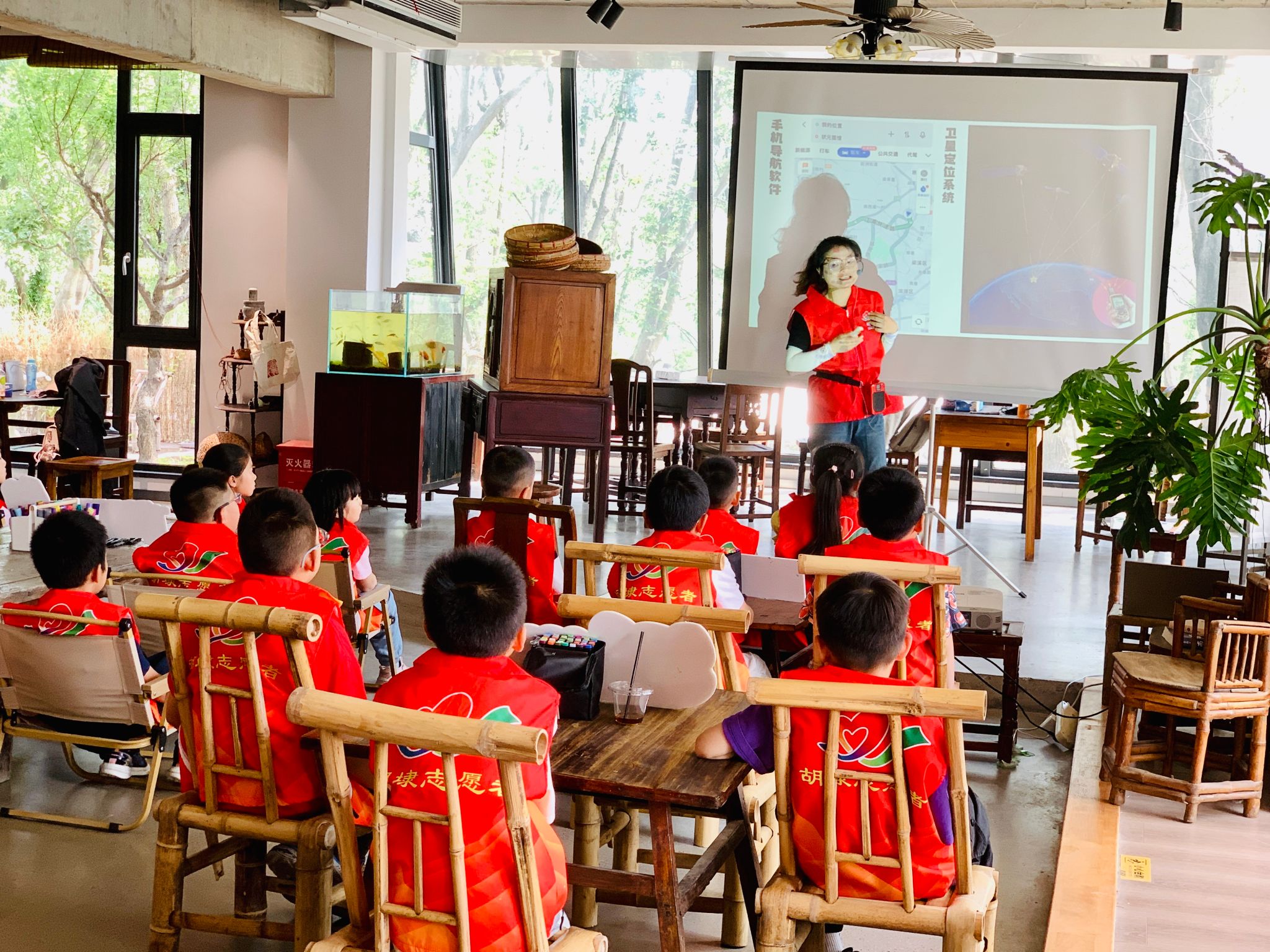 志愿者手把手教孩子们绘制地图