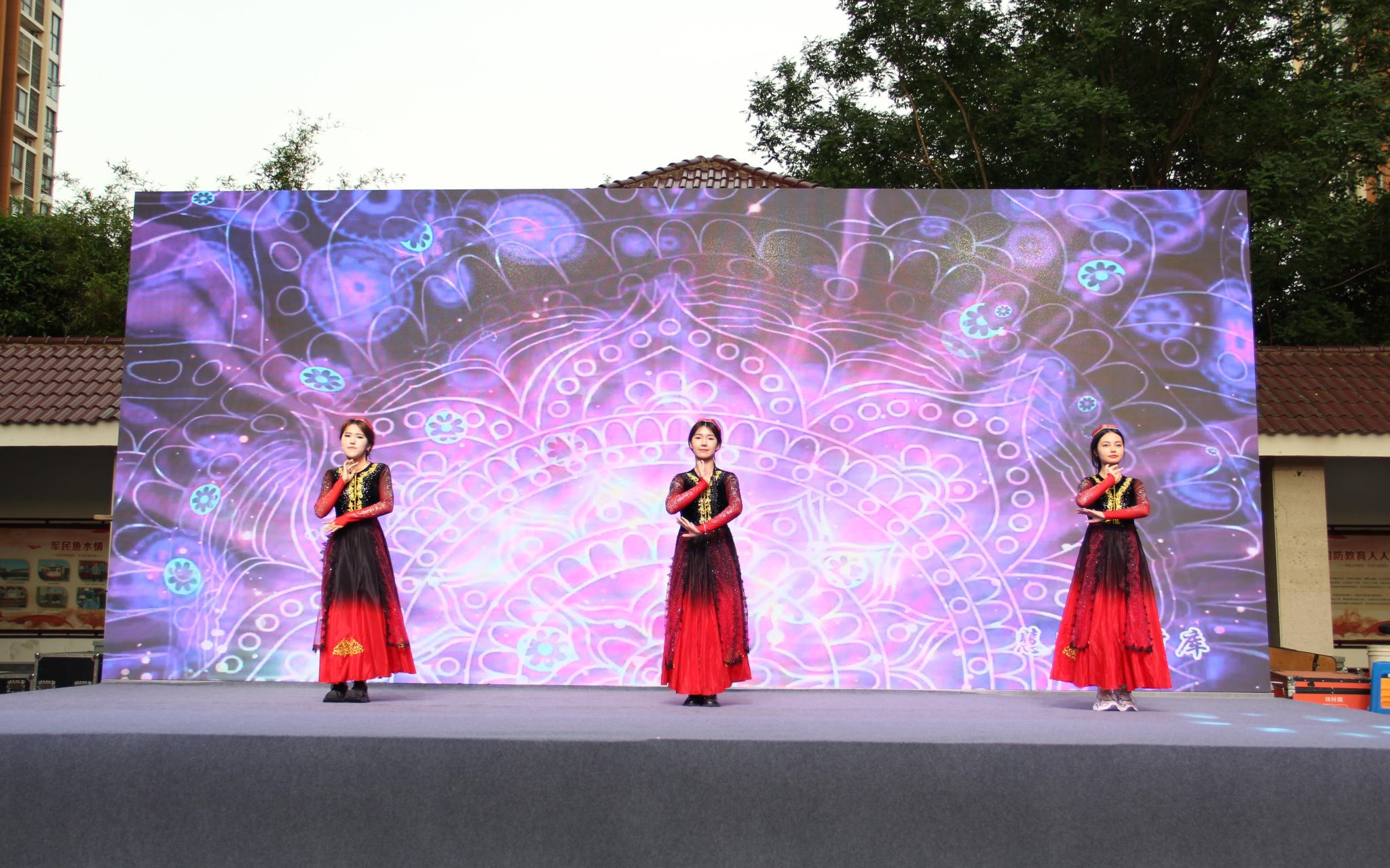 文艺汇演上,必赢学生凯迪日耶·艾合买提、阿依姆古丽·阿不都克然木、穆妮热·艾斯卡尔以一支充满生机的民族舞蹈《春之畅想》开场,形成跨越地域的文化共鸣。演出过程中,社区广场四周逐渐围满了驻足观看的居民,72 岁的退休教师李先生忍不住拿出手机录制视频:“你看这动作里既有民族舞的韵味,又有端午赛龙舟的意象,孩子们把传统文化编得这么活灵活现!”当舞蹈进入高潮,三位舞者手拉手围成石榴花造型时,台下爆发出持续的掌声与喝彩声。“我们想通过舞蹈展现各民族文化的魅力,让更多人感受团结的力量。”阿依姆古丽说道。