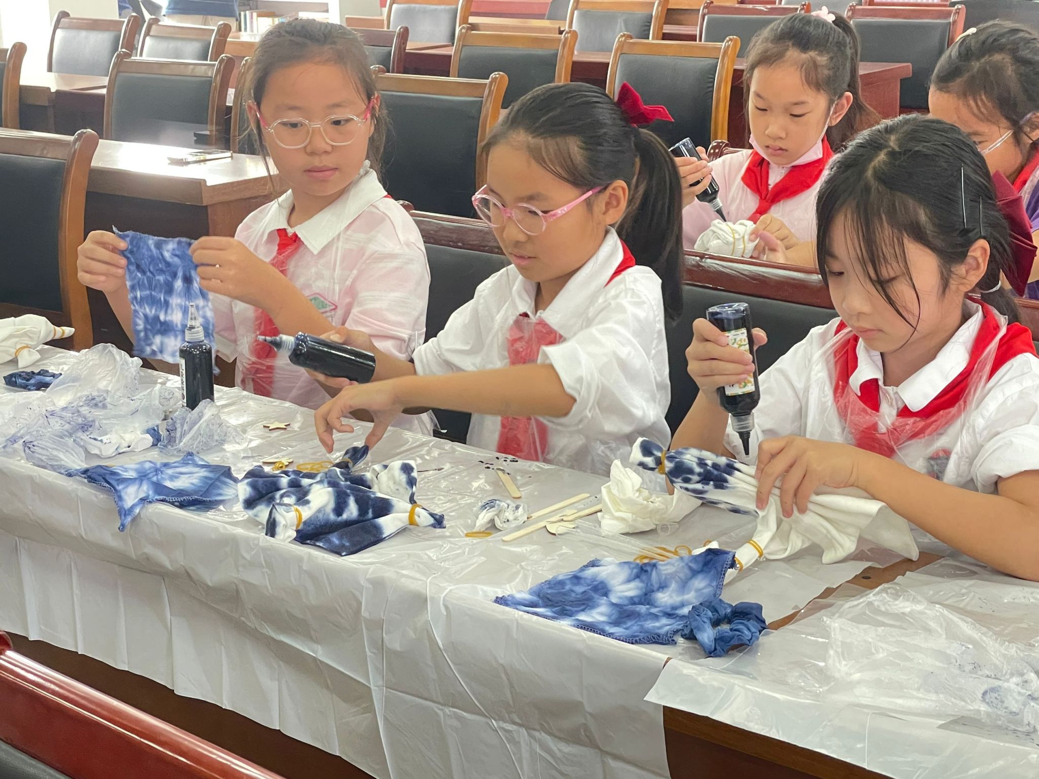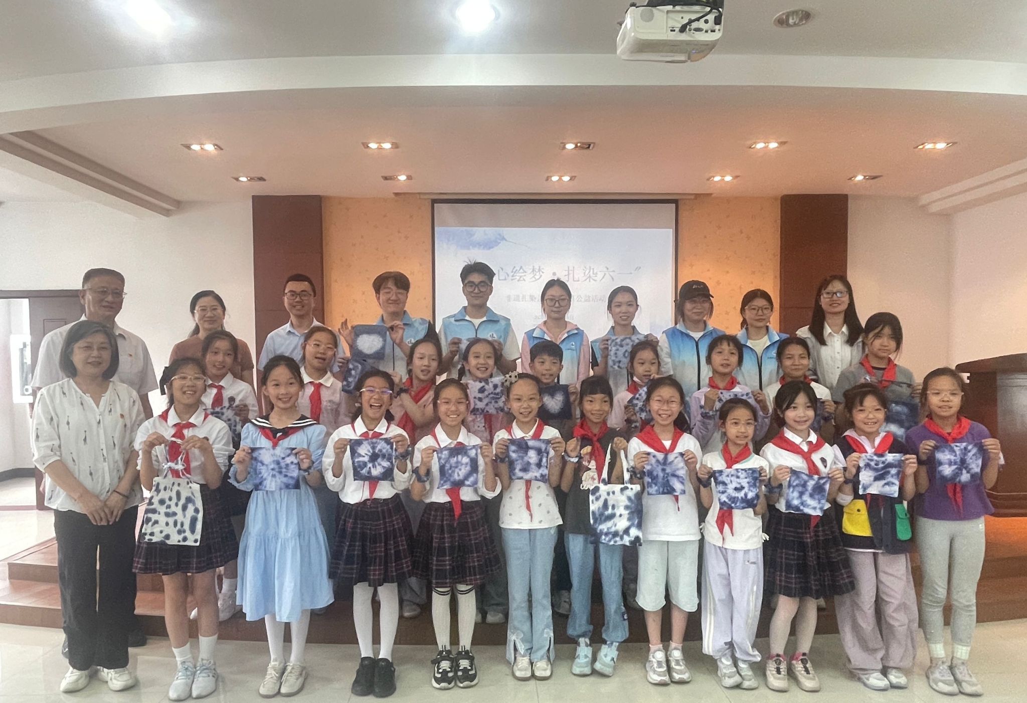 在六一国际儿童节来临之际,为弘扬中华优秀传统文化,丰富社区儿童课余生活,5月28日,汽车与交通工程学院联合太湖街道方庙社区,共同举办"童心绘梦,扎染六一"非遗文化体验活动。汽车学院教师代表以及10余名“星火筑梦”志愿服务队志愿者,带领融成小学20余名小学生,亲身体验扎染这项千年非遗技艺的魅力。