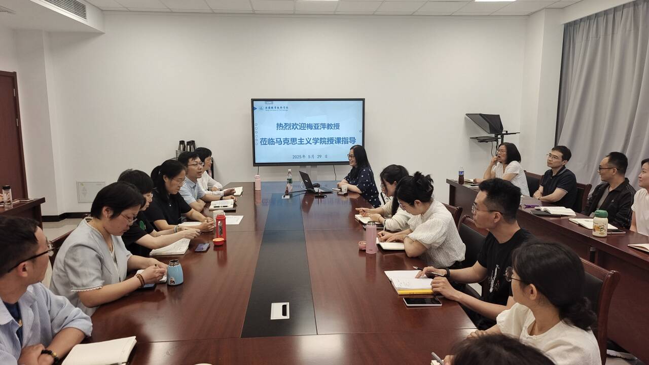 为进一步提升思政课教师教学水平和竞赛成绩,5月29日下午,马克思主义学院举行了“正思讲坛”系列之《以赛促教,铸魂育人——思政课教学比赛备赛策略与课堂创新》主题讲座。中国企业管理无锡培训中心主任、党委书记梅亚萍担任本次主讲嘉宾。马克思主义学院院长宋瑞超主持讲座。