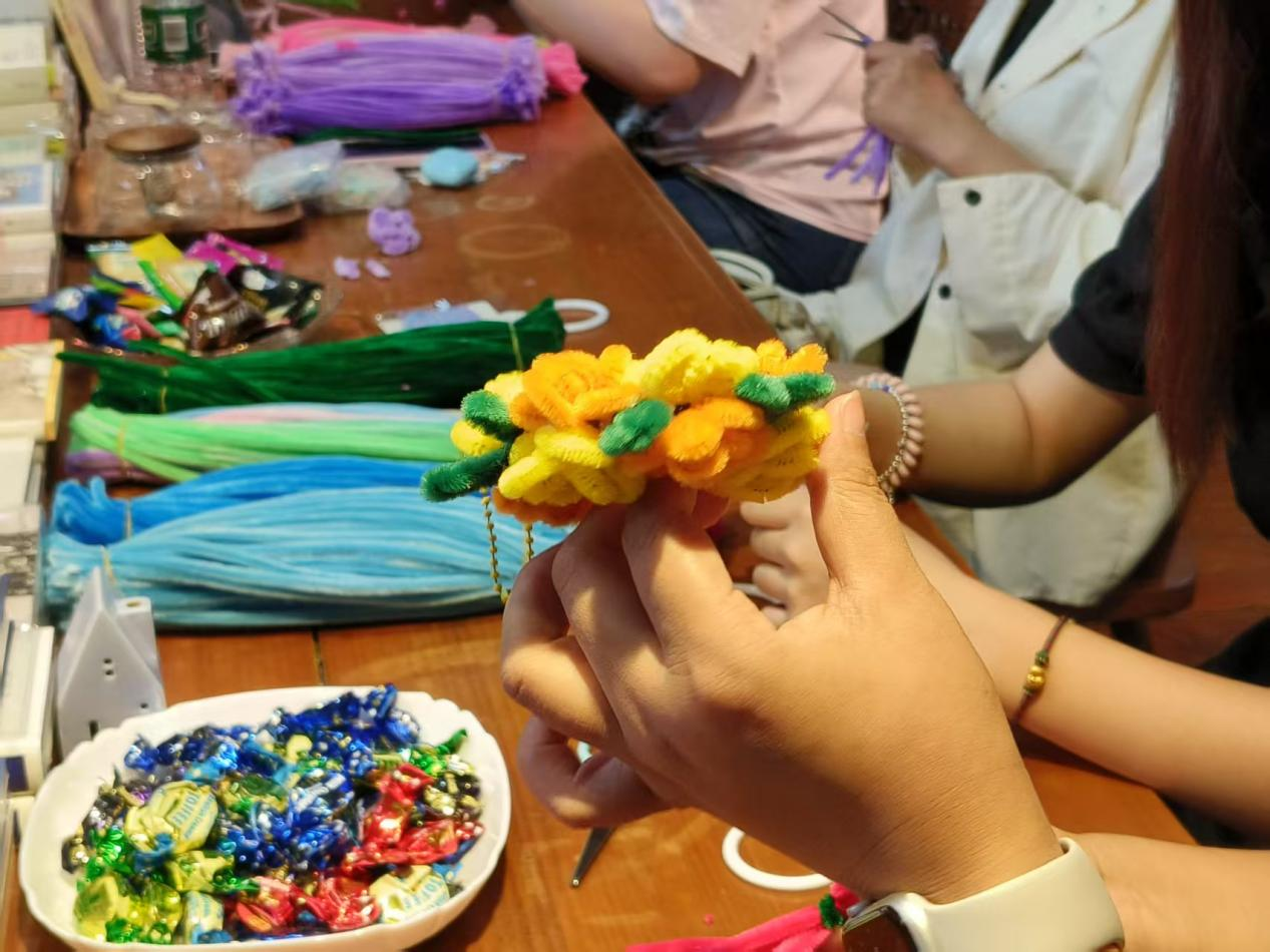 活动现场师生们围坐一起,分享彼此的作品和创作感悟。每个手工作品不仅体现了大家的个性和审美,也成为表达内心的独特方式。伴随轻松愉悦的交流气氛,每个作品都像一份温暖的礼物,彼此传递着鼓励和欣赏。