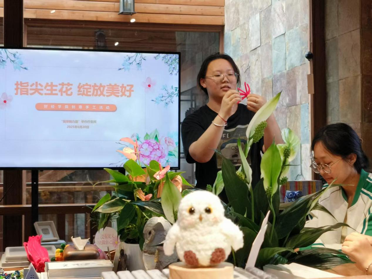 巧手传递温暖,艺术疗愈心灵,手工制作的沉浸式体验,帮助同学们放松心情、激发创造力,在忙碌的学习生活中找到平衡与乐趣。未来,财经学院“悦享她力量”手作疗愈所将持续开展传统文化与手工艺术系列活动,进一步丰富校园文化生活,引导学生在实践中感受艺术之美,体验手作之趣,让创意与温暖相伴成长。