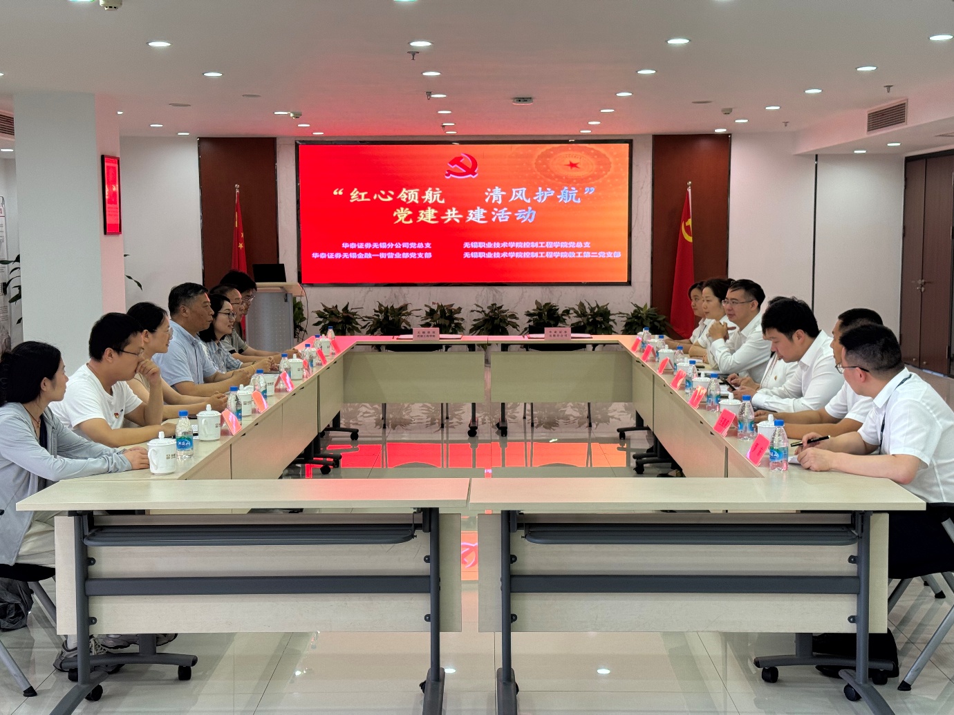 控制学院党总支书记曹秀中对华泰证券无锡分公司的热情接待表示感谢并简要介绍了学校发展历程及学院的党建工作成果与专业特色。他指出,学院始终坚持党建引领,注重将党建工作与人才培养、科学研究、社会服务紧密结合,此次与华泰证券无锡分公司开展党建共建,是学院推进党建工作创新、深化校企合作的重要举措,希望双方以党建共建为契机,在人才培养、实习就业、社会培训等方面实现优势互补、资源共享,共同培养适应社会发展需求的高素质应用型人才。
