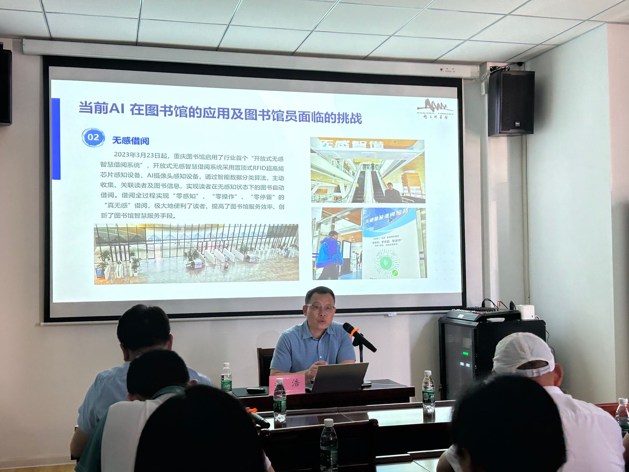 6月26日下午,图书馆特邀江苏省图书馆学会秘书长、研究馆员李浩先生莅临指导,在图书馆210会议室作题为《数智时代图书馆员面临的挑战及专业知能转型提升》专题讲座。无锡市高校图书馆界40余位同仁齐聚一堂,聆听讲座,共同研讨数智时代图书馆员的专业发展路径。