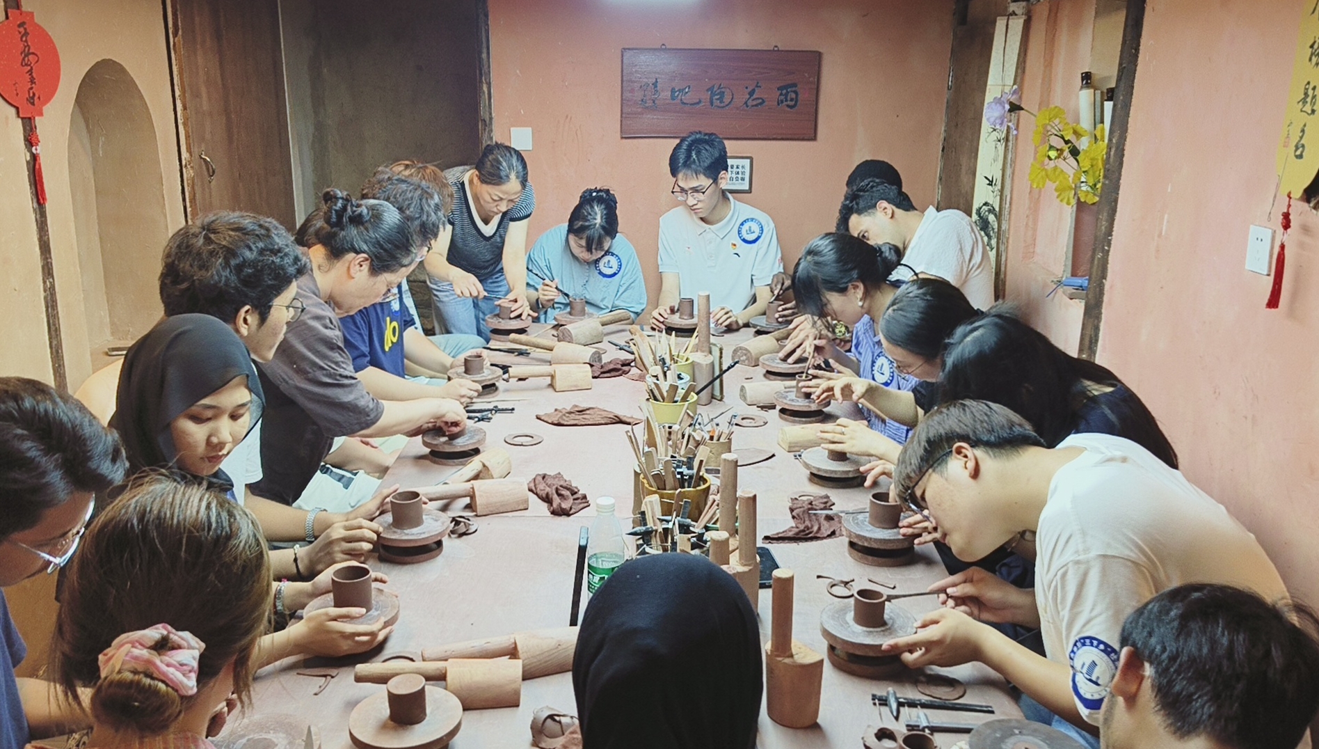 近日,爱尔兰学院"紫韵匠心传习社"中外学生文化传承团走进中国陶都宜兴,开展"紫韵传习·匠心传译"暑期"三下乡"社会实践活动。活动以紫砂陶艺为载体,融合非遗研学、技艺体验与国际传播,探索非遗文化与高校思政教育的深度融合,打造了一场“行走的思政课”,为中外青年搭建起文化对话与价值传递的桥梁。