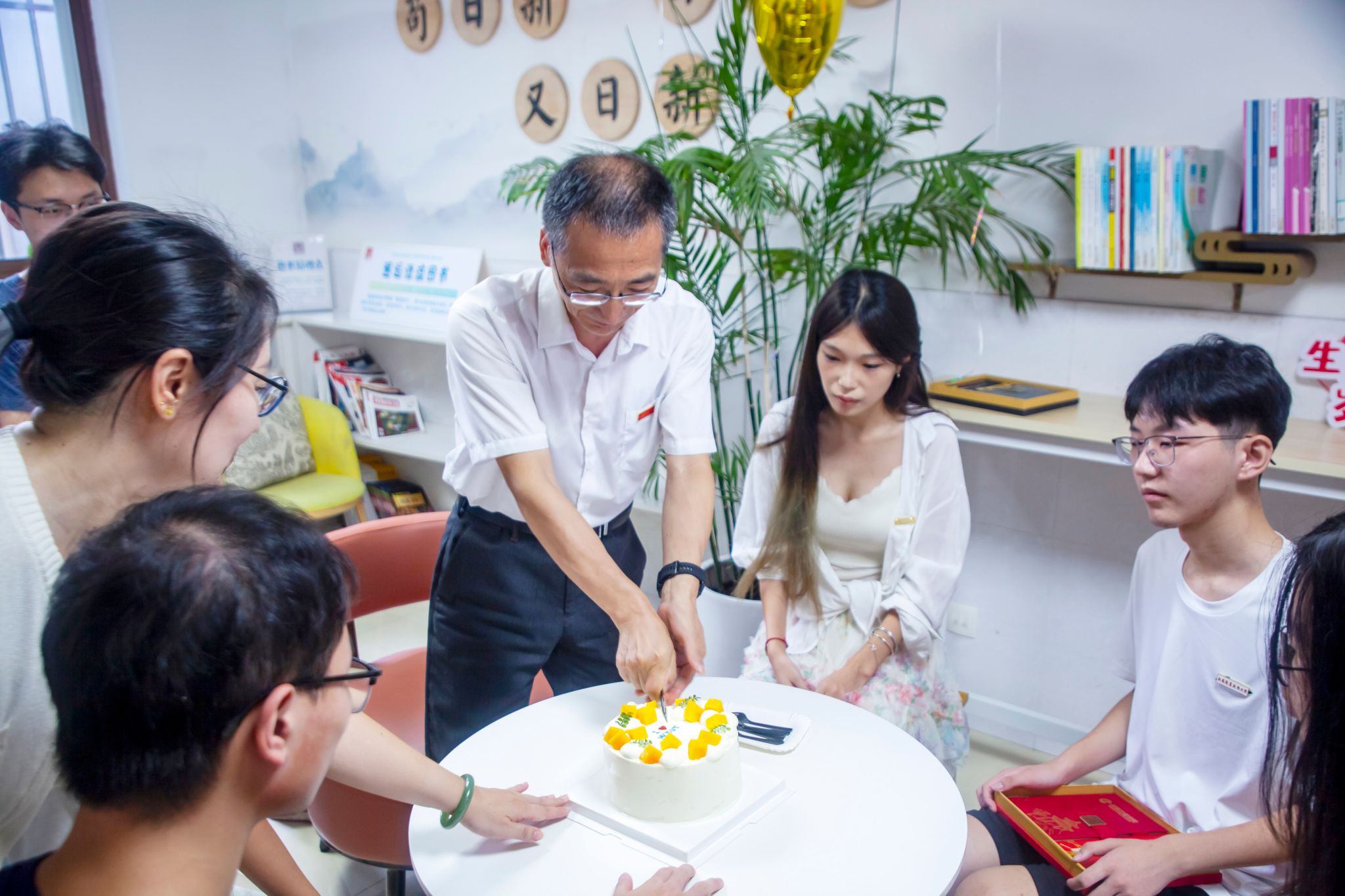 龚方红为学生切分生日蛋糕