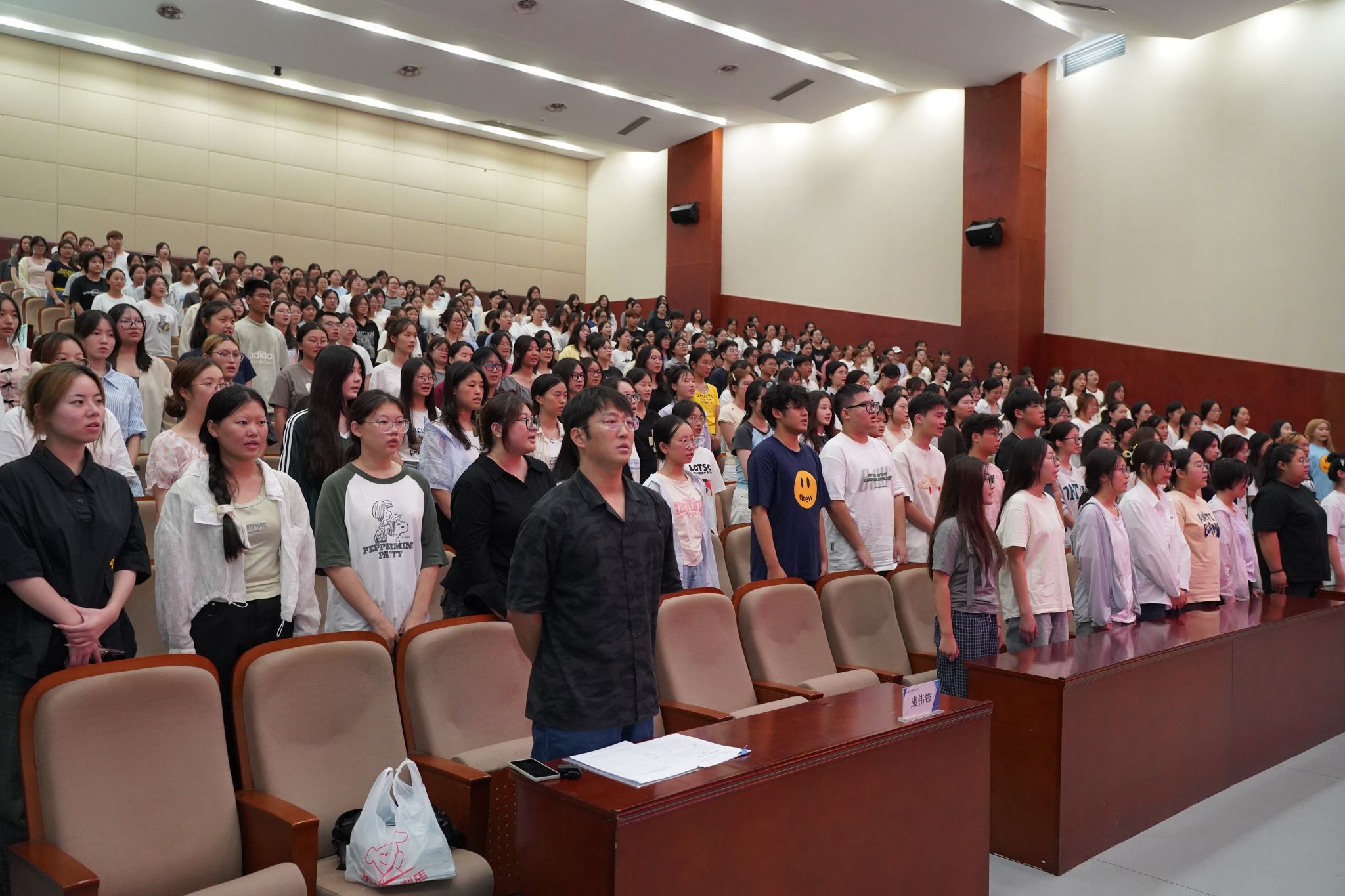 青年教师代表徐静文博士结合自身工作经验,勉励同学们“与时代发展同向的人生目标才有意义”“坚实的脚步才能让梦想厚重”“拥有阳光与温度的内心才能幸福”。老生代表2023级毛学慧同学分享了自身的成长经历,希望学弟学妹们能够用务实笃行、开放包容、舒展个性的态度拥抱大学生活。2025级新生代表郑家惠同学,从励志、勤学、坚韧三个方面表达了全体新生对未来的热切期望和对人生的庄严承诺。