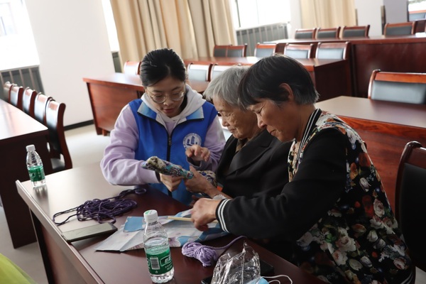在重阳节到来之际,为给正明村的老人们送上一份特别的礼物,财经学院联合正明村村委还开展了一场充满温情的艾草锤制作活动。活动现场,志愿者们和老人们一起动手制作起来,将艾草包整理整齐,插入木棒,包上棉布,再用棉线一圈一圈地缠绕,一个简单而实用的艾草按摩捶就制作完成了。艾草的清香和欢声笑语交织在一起,不仅增强了老人们的动手能力,更在动手的过程中增进了彼此之间的感情交流,整个制作过程充满了浓浓的温情,仿佛时间都变得缓慢而美好。