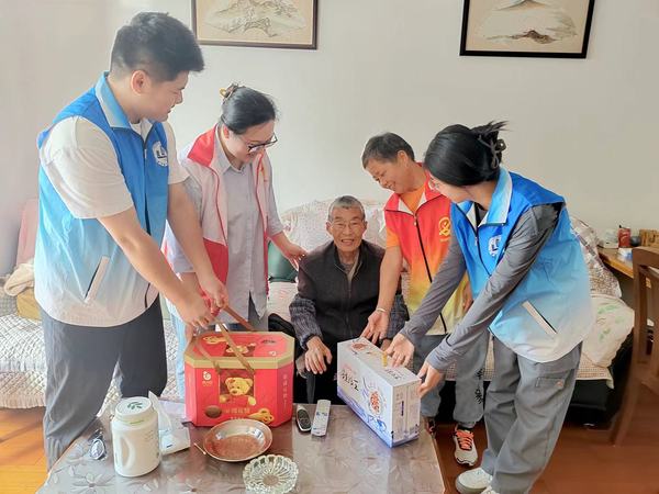 与此同时,在正明村党总支书记卫国的带领下,砺香义工站和正明村的志愿者们组成了多个慰问小组走访社区的高龄老人,带着满满的爱意为他们送上节日的慰问品。活动中,志愿者们与老人们促膝交谈,同老人闲叙家常,询问他们的饮食起居和身体健康情况,用朴实而真诚的行动表达对老人们的关爱。