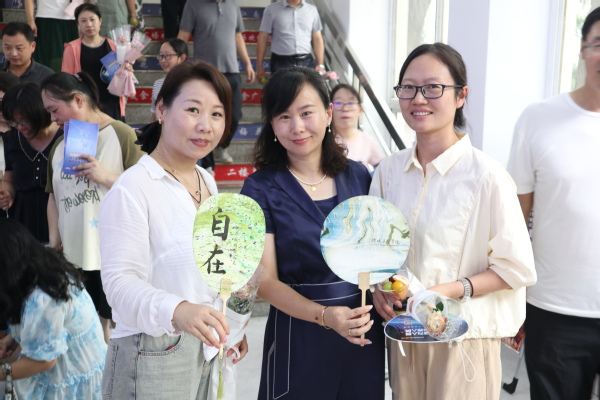 活动现场,师生一起制作漆扇,将一把把精美的漆扇打造成一件件独一无二的艺术品,感受中华传统文化的博大精深。从选材、上色到绘制图案,每一个步骤都充满了匠心和敬意。书法协会的同学们现场在漆扇上写下祝福语,启智润心、乐教爱生、行为世范、心有大我、勤学笃行,无一不表达对老师们的崇高敬意。