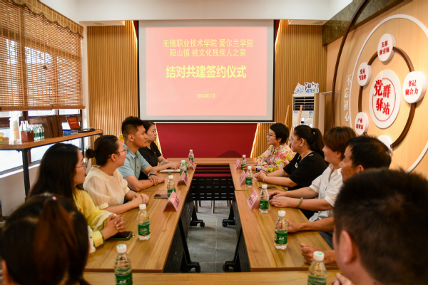 7月6日,爱尔兰学院党总支赴阳山桃文化残疾人之家,开展党建结对共建签约并于此挂牌了国际学生国情教育基地和志愿者服务基地,为今后的扶残助残和共建共享共商共赢奠定了良好的基础。阳山镇残联理事长俞丹萍、阳山村委党总支书记姚剑、残疾人之家负责人曹明玉、残疾人代表和必赢爱尔兰学院党总支书记李湘、副院长孙台维、党员教师代表和学生代表参与了此次活动。